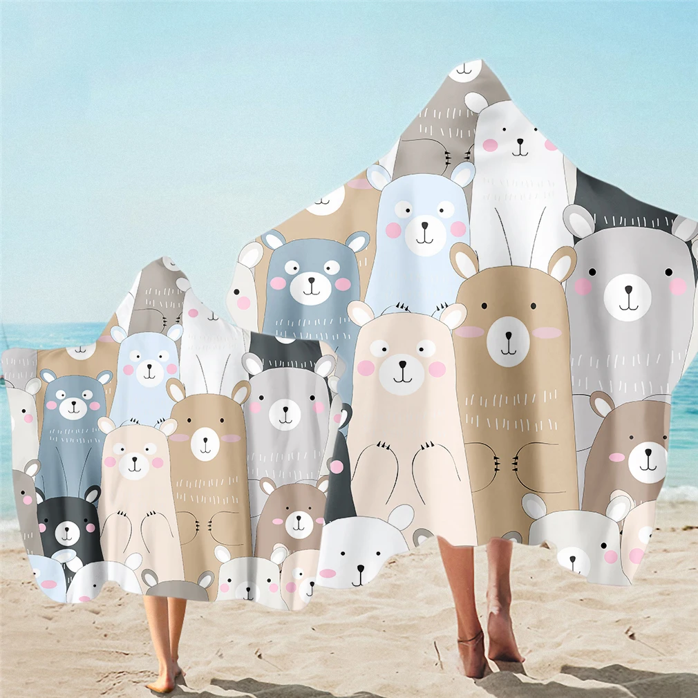 Пляжное полотенце с капюшоном и милыми мультяшными животными для детей и взрослых