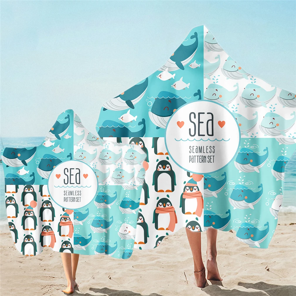 Пляжное полотенце с капюшоном и принтом в виде милого дельфина для ...