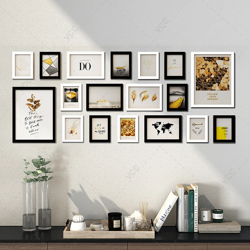 Деревянные рамки для картин, 18 шт., черно-белая фоторамка, настенное украшение из плексигласа, Классическая деревянная рамка, фотодекор