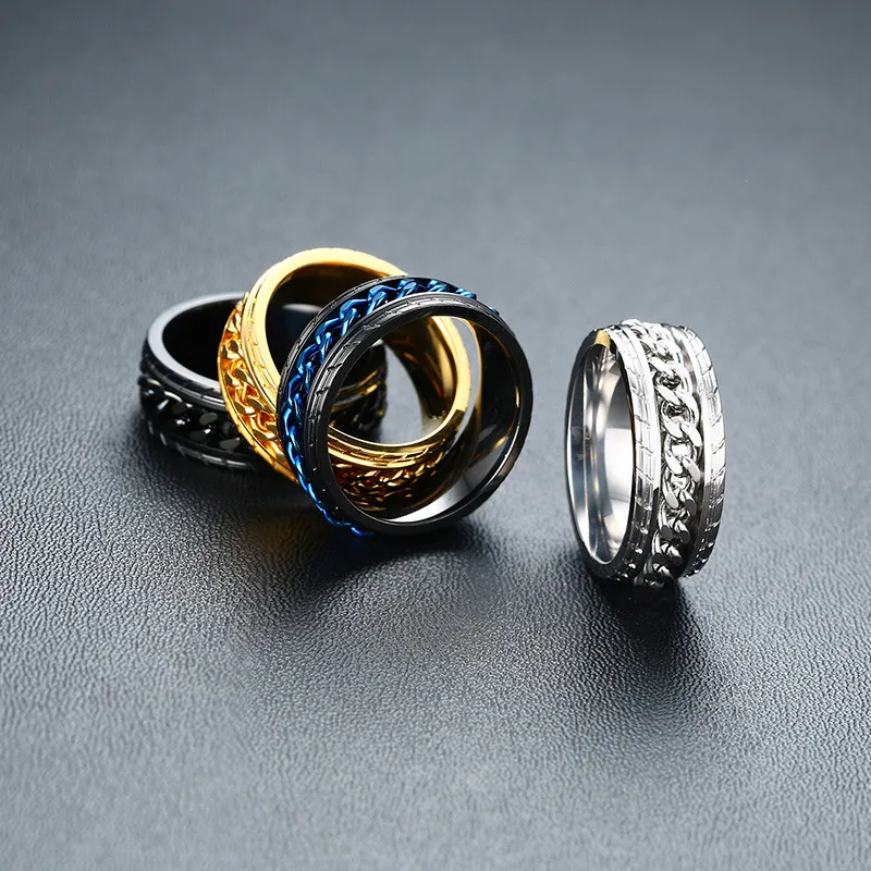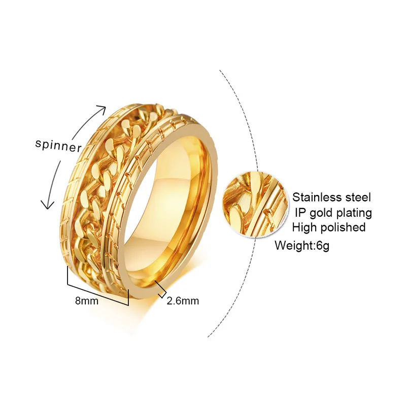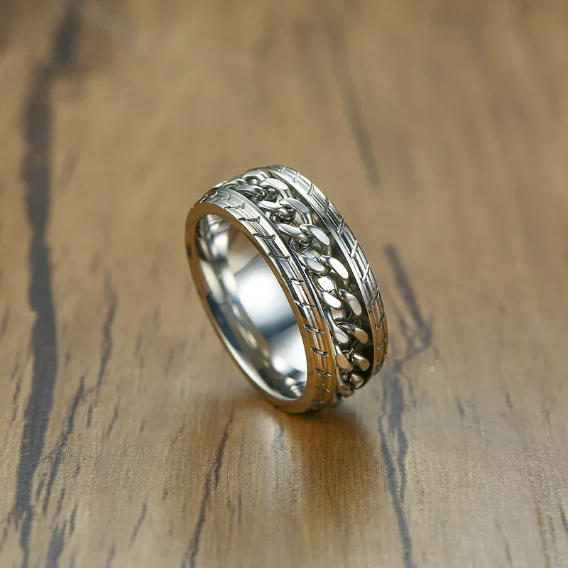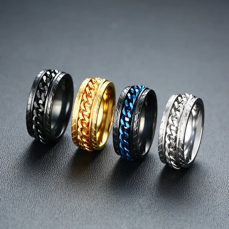 Мужское кольцо-Спиннер LETAPI 8 мм из нержавеющей стали с кубинской цепью, свадебное мужское антистрессовое ювелирное изделие
