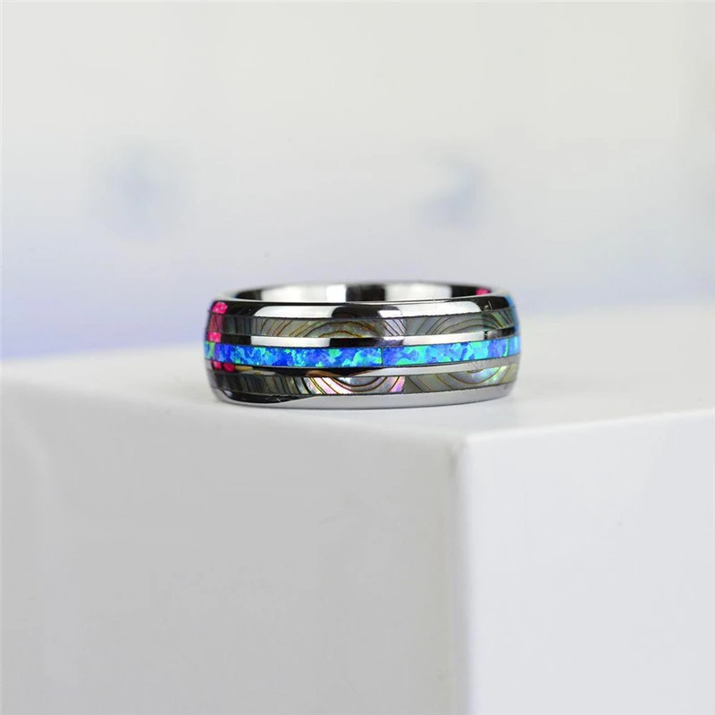 Модные синие мужские кольца 8 мм, ракушки из нержавеющей стали, обручальные кольца, хороший подарок на Рождество, мужские ювелирные изделия