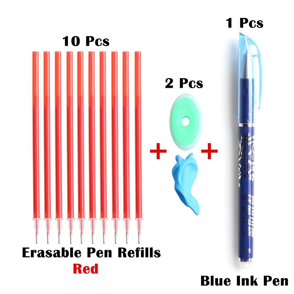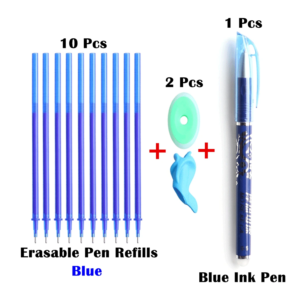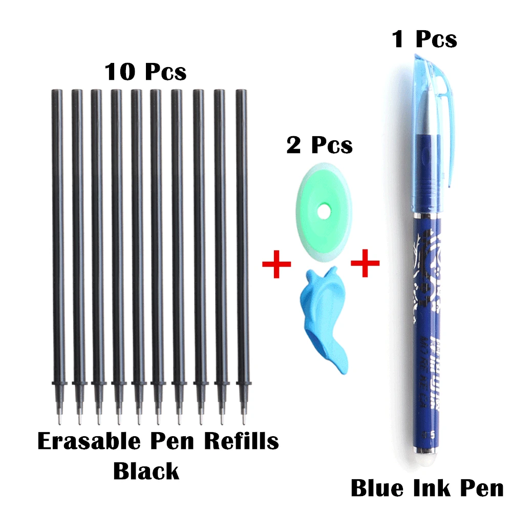 Ручка 10 + 2 + 1 шт/набор 0,5 мм синего цвета с черными чернилами гелевая ручка стержень со стираемыми чернилами стержень стирающиеся ручки для школы канцелярские гелевыми чернилами