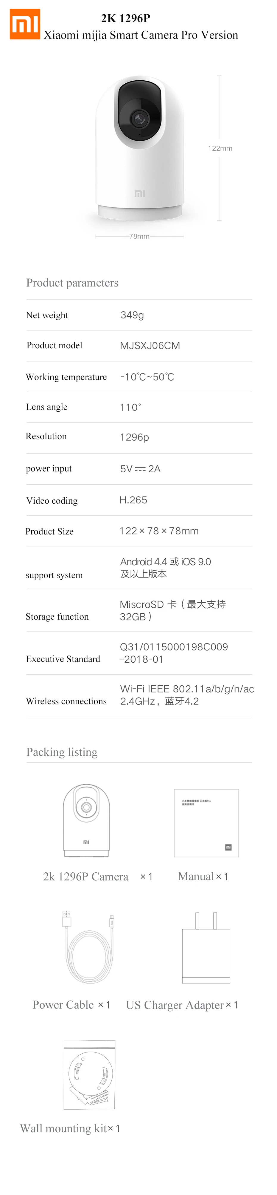 2K 1296P Pro версия Xiaomi Mijia камера работает сПриложение Mi Home