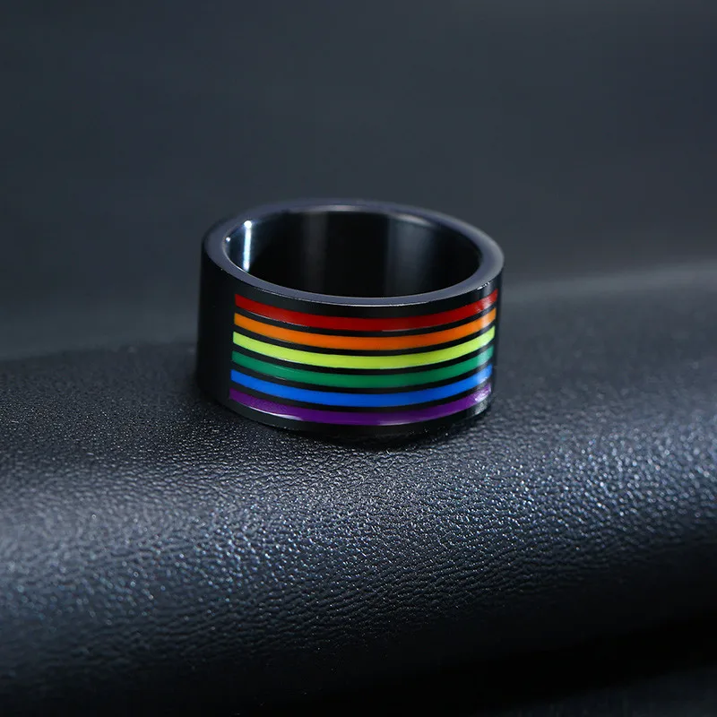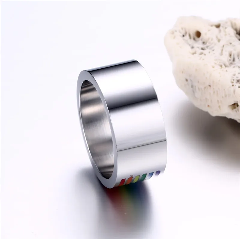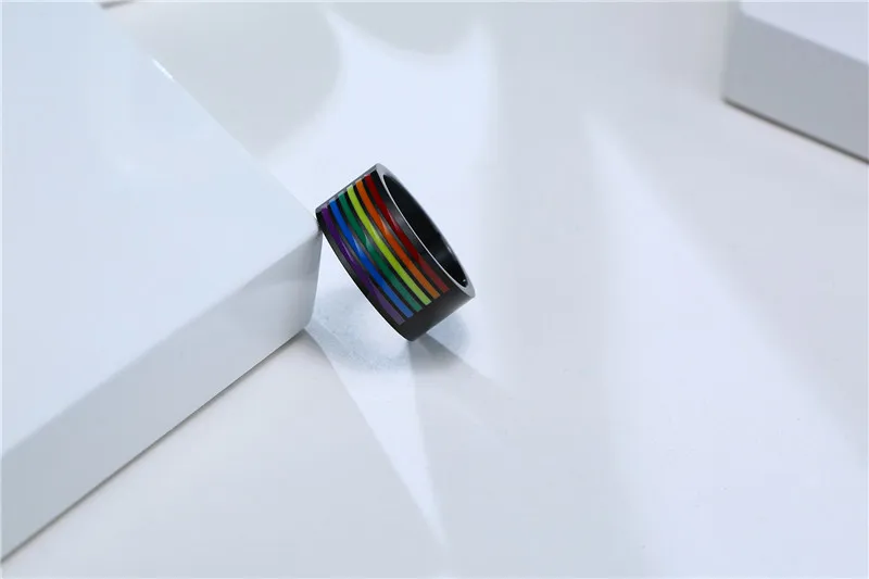 LETAPI 2021 новая модная обувь на каблуке 10 мм Черный Серебряный Цвет 316L из нержавеющей стали с изображением ЛГБТ-радуги гордость обручальные кольца для мужчин и женщин ювелирные изделия