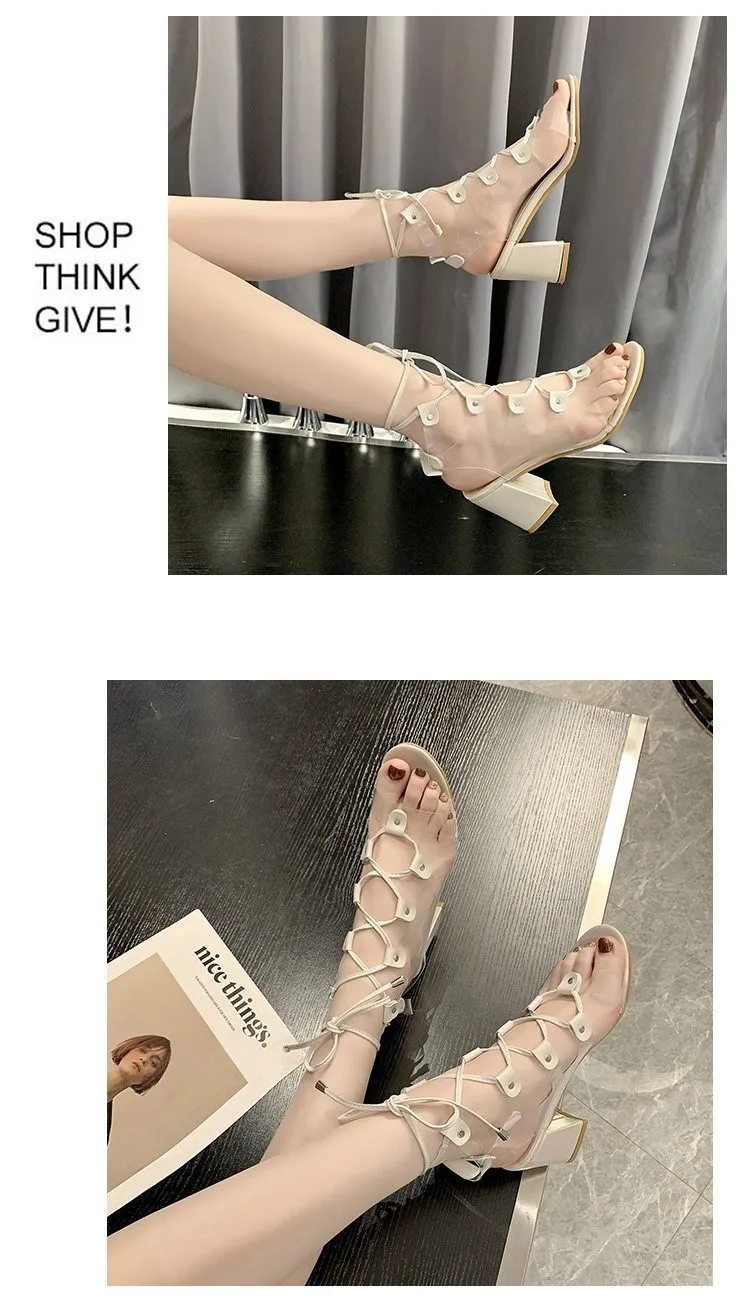 Женские босоножки на высоком каблуке, летние сетчатые сандалии с пр...