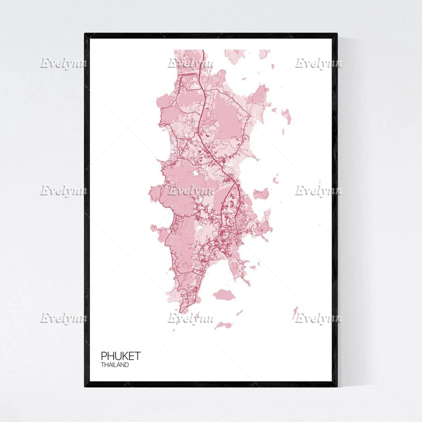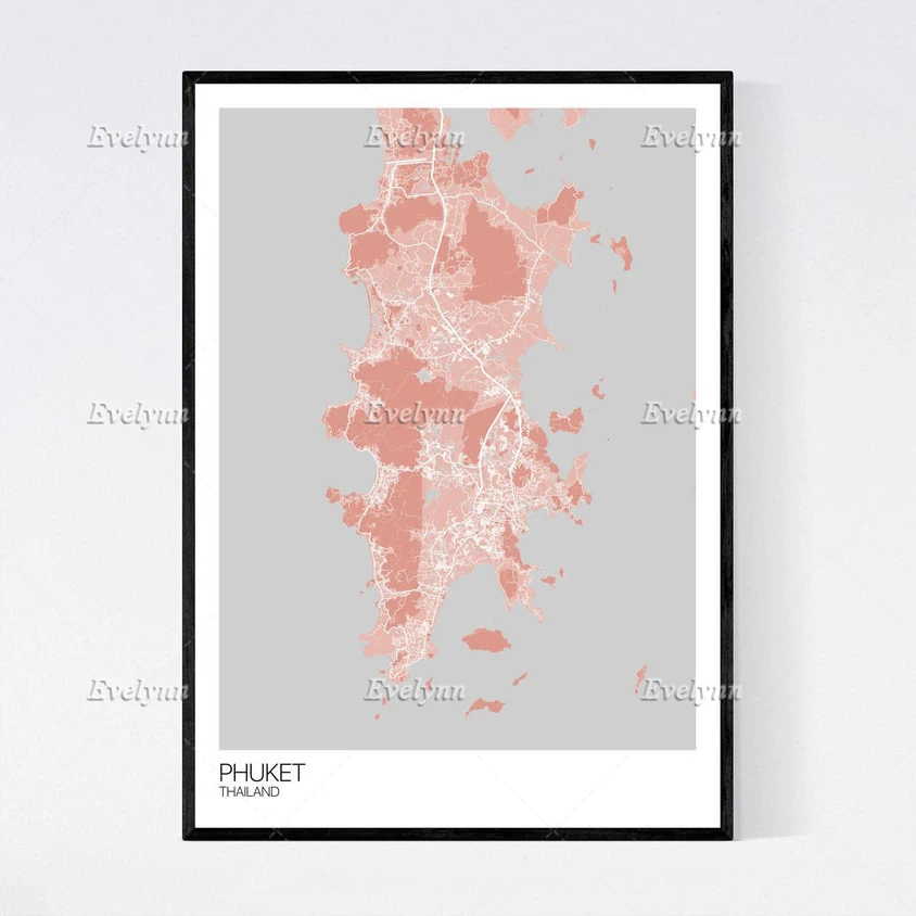 Карта пхукета, Таиланд, скандинавский Ретро минимализм, живопись, плакаты и принты на холсте, настенное искусство, модульные картины, домашний декор, подарок