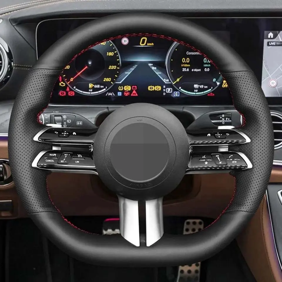 Ручной работы DIY Мягкий черного цвета из натуральной кожи чехол рулевого колеса автомобиля для Mercedes Benz C класса W206 2021 e-класс W213 2021