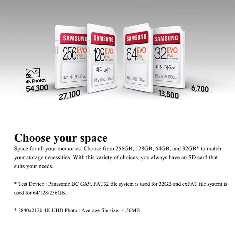 Карта памяти SD SAMSUNG EVO PlusPRO, 128 ГБ, 32 ГБ, 64 ГБ, 256 ГБ, ...