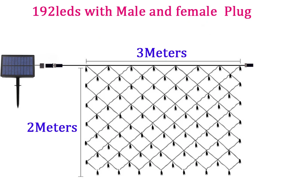 Сетчатый светодиодный светильник на солнечной батарее, 3x2 м, 192 с...