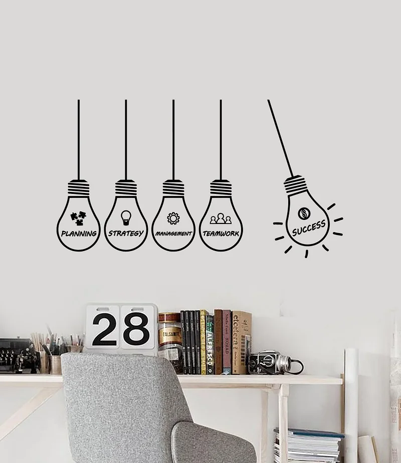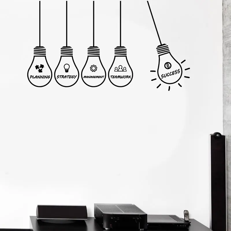 Офис Винил Съемный стены Стикеры офисные успешное планирование Творческий светильник лампочка Стикеры Офис кабинет Арт Декор bg7