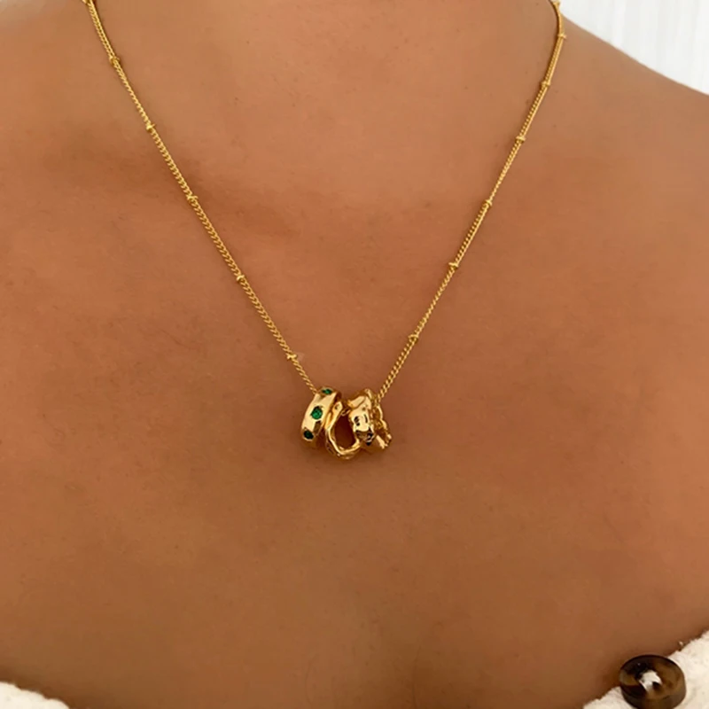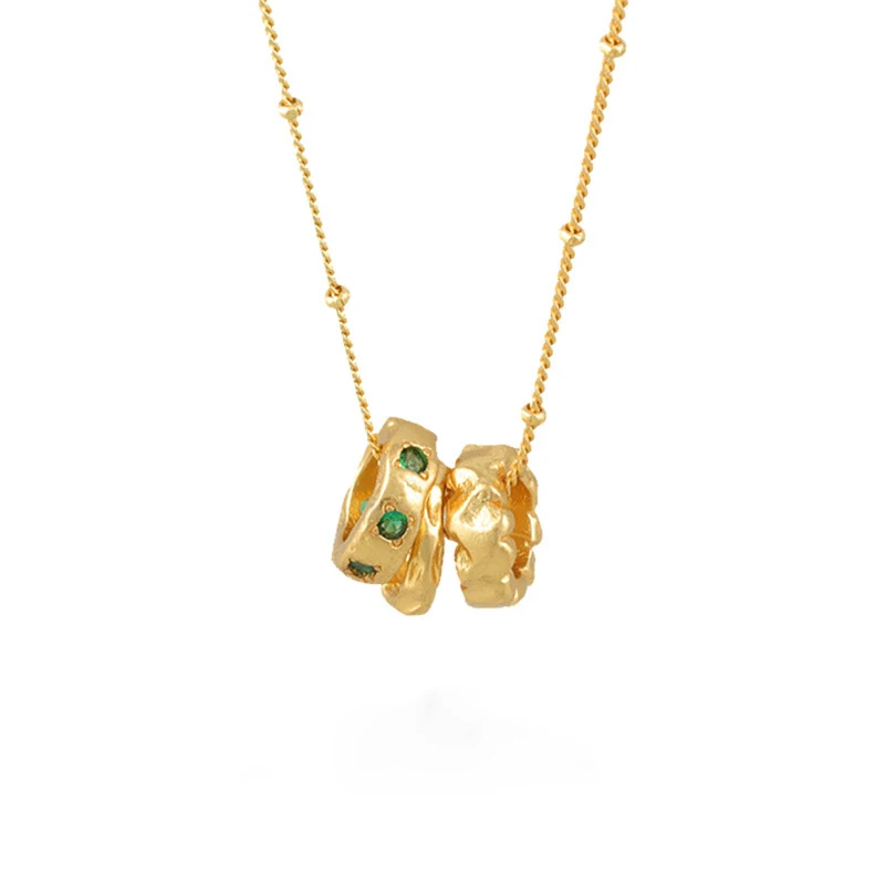 Волнистое ожерелье Peri'sBox с тремя кольцами, неправильное ожерелье с зеленым кубическим цирконием, раннее ожерелье для женщин, винтажные ювелирные изделия, Лидер продаж