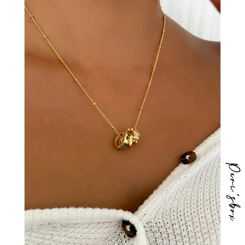Peri'sBox текстурированный тройной круг нерегулярные ожерелья зеленый кубический циркон цепочка с золотыми бусинами ожерелья для женщин винтажные ювелирные изделия горячая распродажаМатериал: медьОсновной камень: фианитЦвет: Золотой