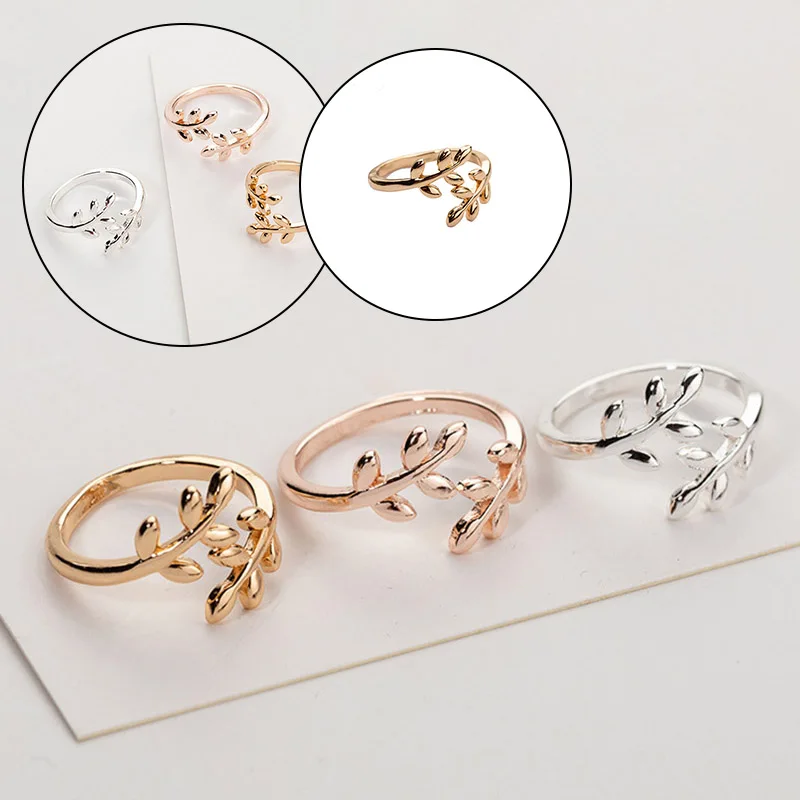 Элегантное регулируемое Открытое кольцо с листьями оливкового дерева для женщин, обручальные кольца из розового золота, ювелирные изделия на палец, рождественский подарок