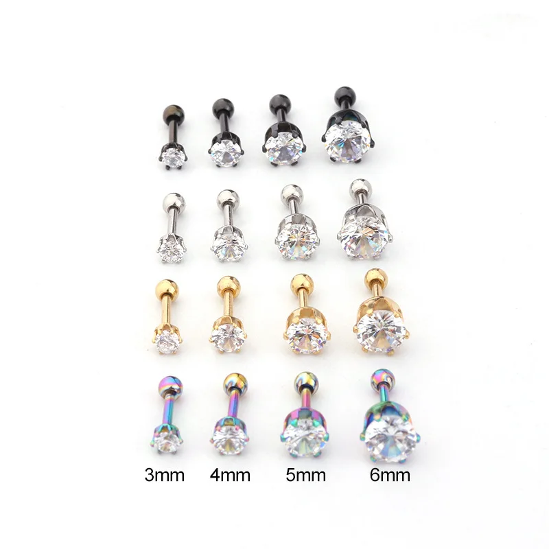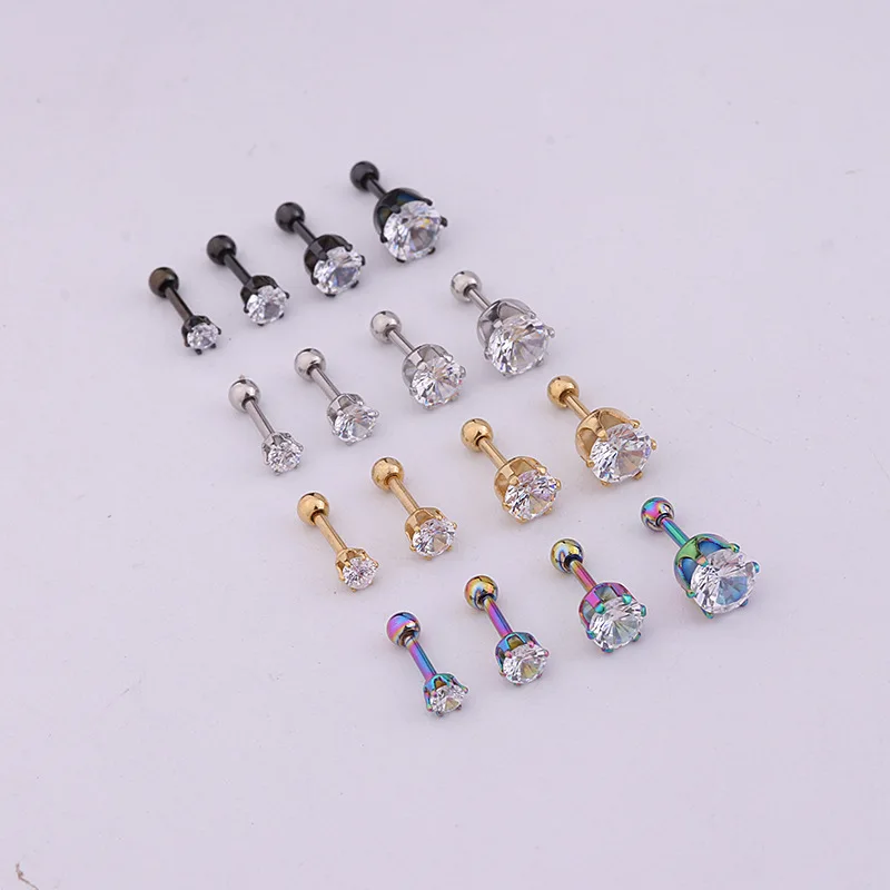 1 шт. простые новая серьга с круглой Cz Нержавеющаясталь многоцветный болт с кристаллом мяч тонкий стержень пирсинг уха, ювелирное изделие для тела