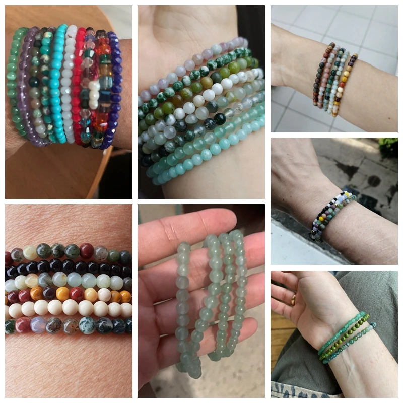 Бусины из натурального зеленого авантюрина для мужчин и женщин, браслеты из черной веревочной оплетки, эластичные украшения для полировки флюорита, 4 мм