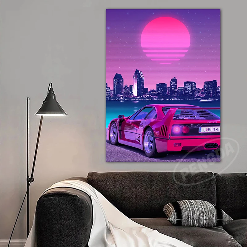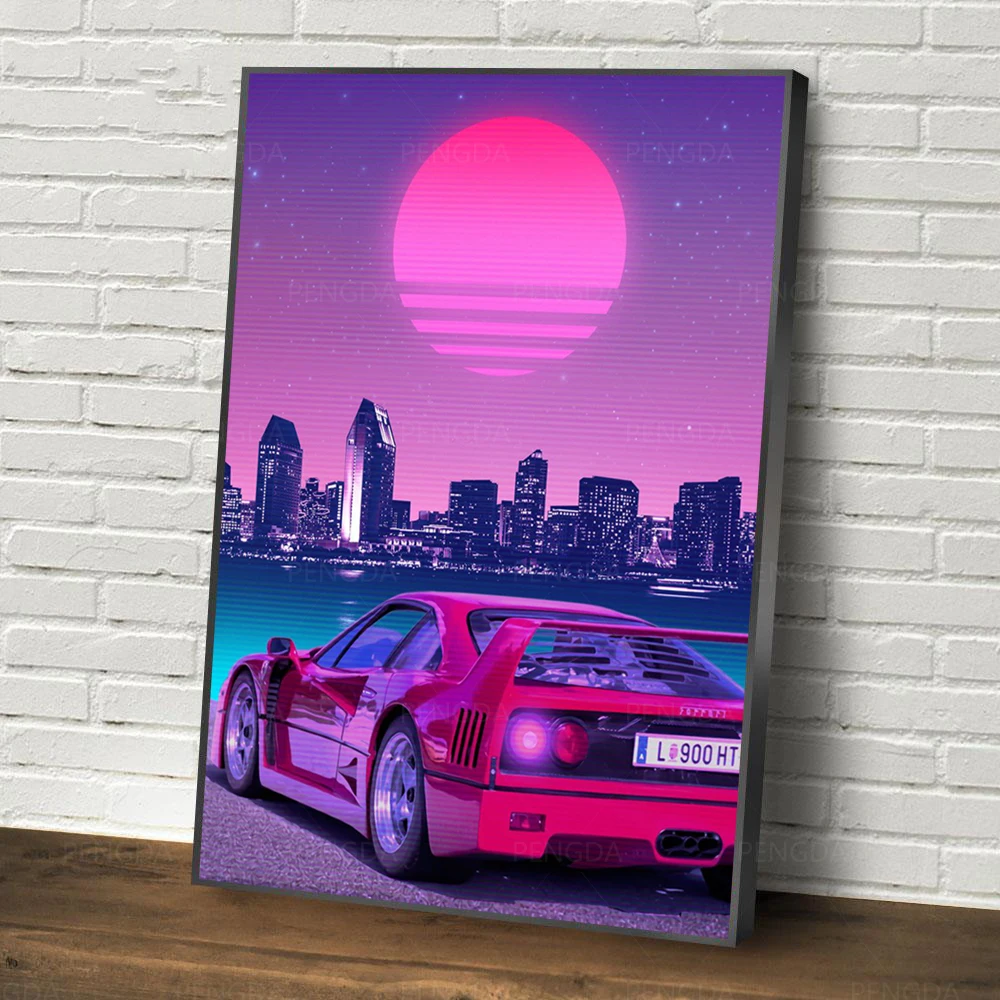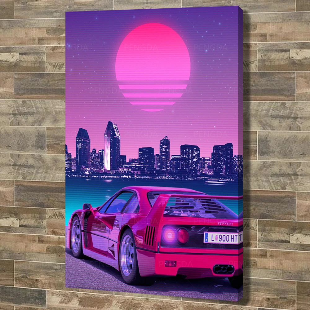 Холст для украшения дома Vaporwave, настенный неоновый плакат, модульная Роскошная Автомобильная картина, рама для прикроватного фона