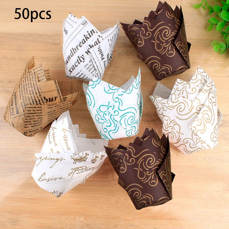 50 шт. в форме тюльпана форма для порционного кекса выпечки чашки новости Бумага Стиль бумажный стаканчик для кексов Бумага чашки ударопрочный оболочки торт лоток для лунного пирога упаковочная коробка для десерта