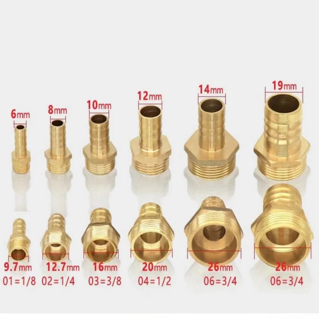 Штуцер для шланга, 4 25 мм, наружная резьба 18 дюйма, 14 дюйма, 38 дюйма, 12 дюйма, медный штуцер с зазубринами, Соединительный адаптер для топливного, газа, воды, шланга для масла