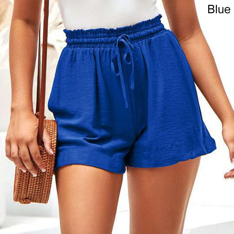 Женские летние шорты с эластичной резинкой на талии, повседневные свободные однотонные шорты