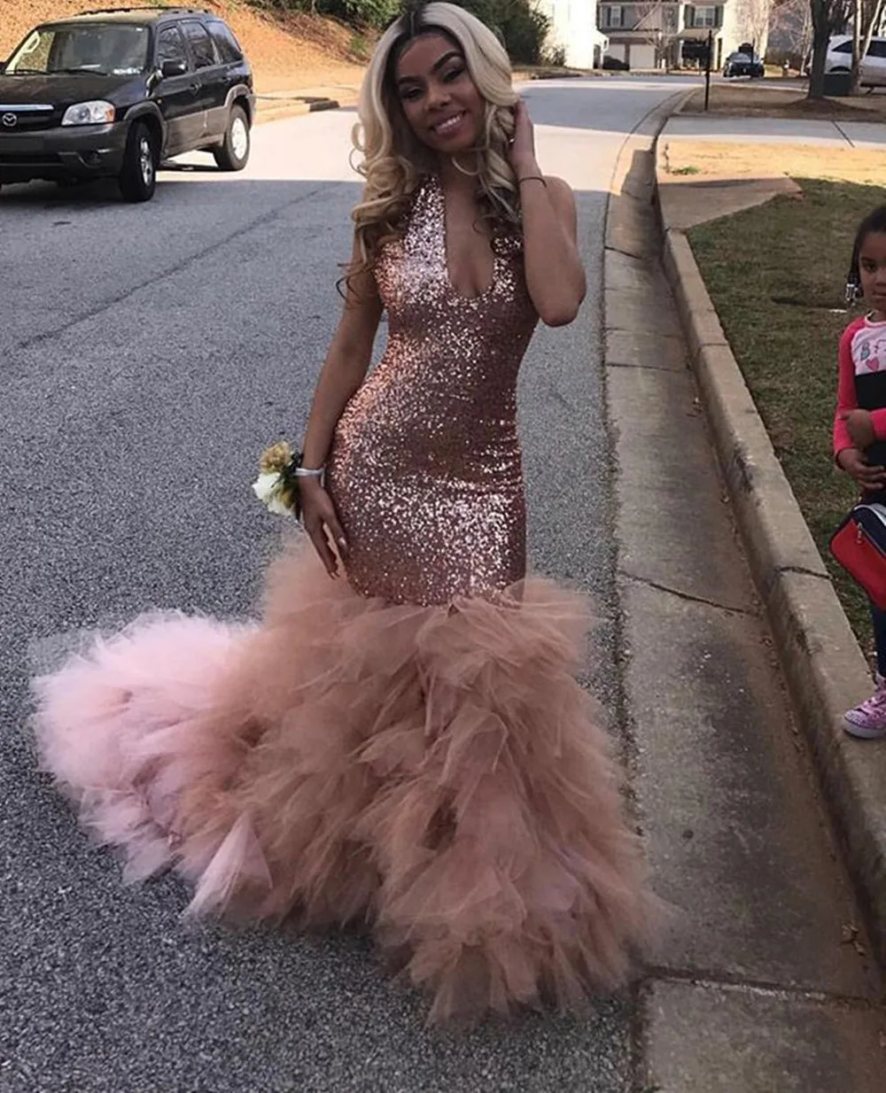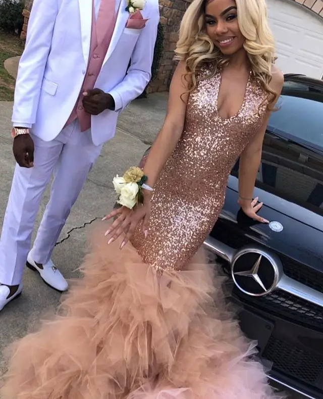 Африканское Серебряное платье-Русалка для выпускного вечера с блест...