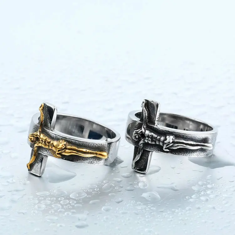 Личности в британском ретро стиле Готический Распятие Иисуса кольцо Модные мужские и женские религиозные юбилей цвета: золотистый, серебристый Цвет кольцо ювелирные изделия