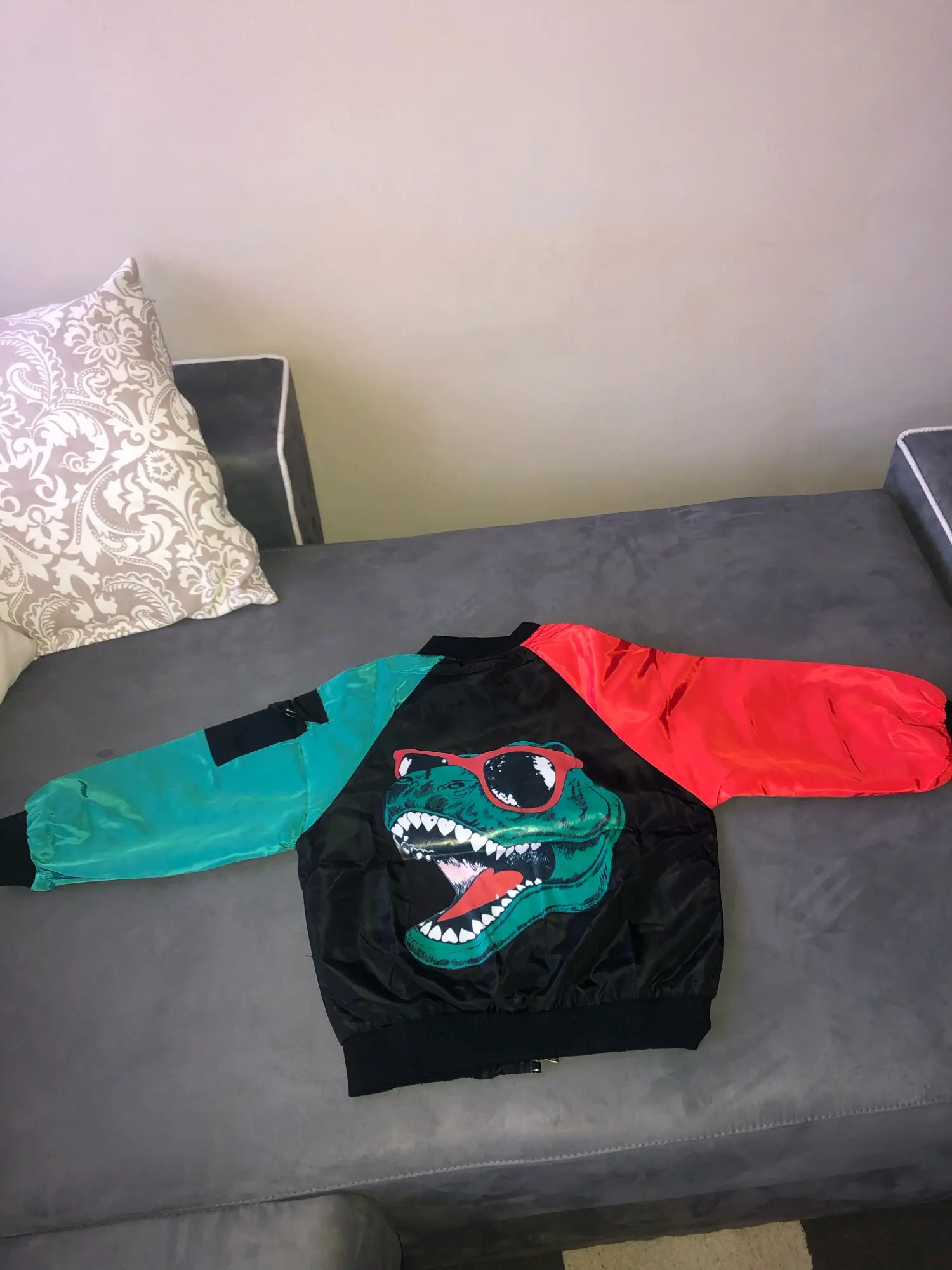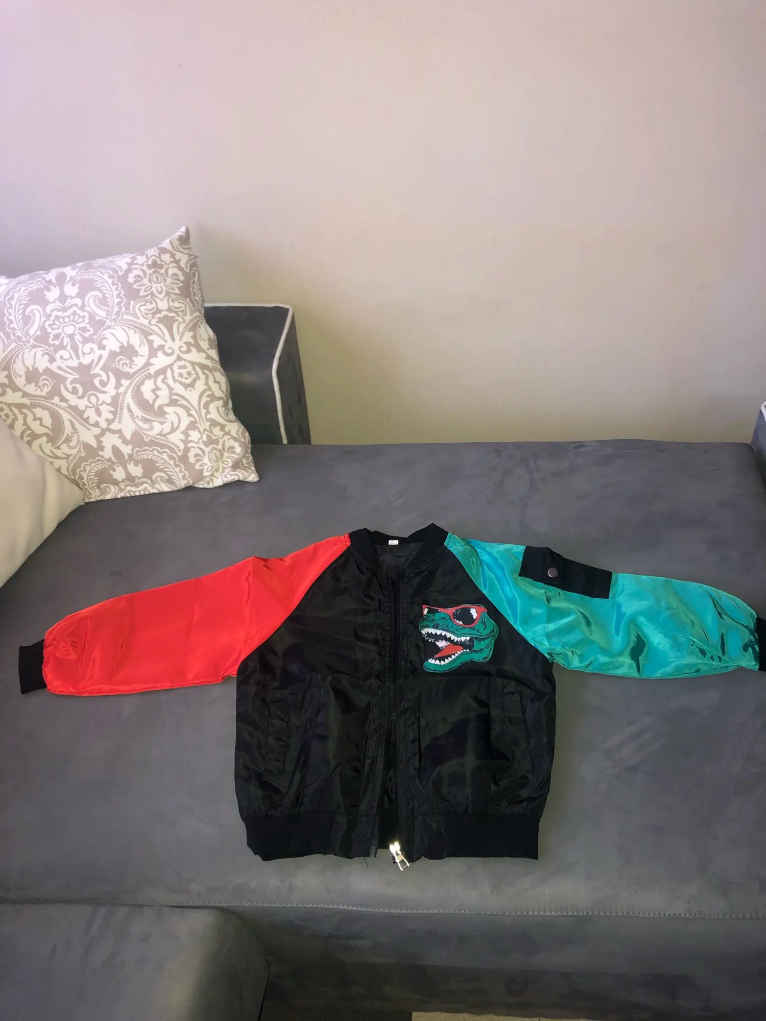 2021 весенне-летняя Осенняя тонкая куртка с длинными рукавами и принтом динозавра для мальчиков Детское пальто