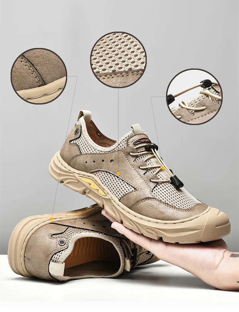 Сандалии мужские сетчатые дышащие, натуральная кожа, повседневная о...