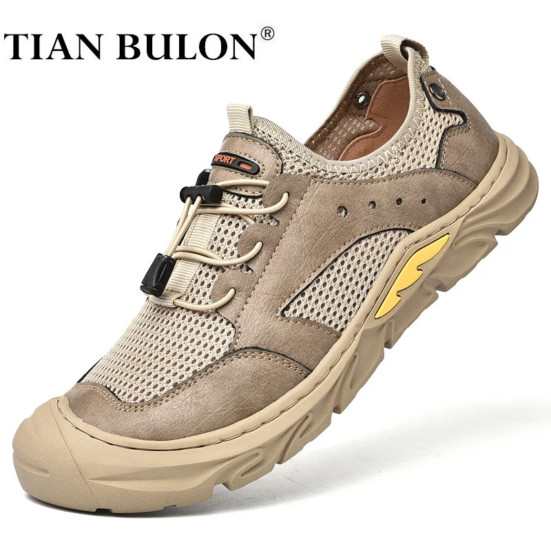 Летние сетчатые мужские сандалии, дышащая повседневная обувь из нат...
