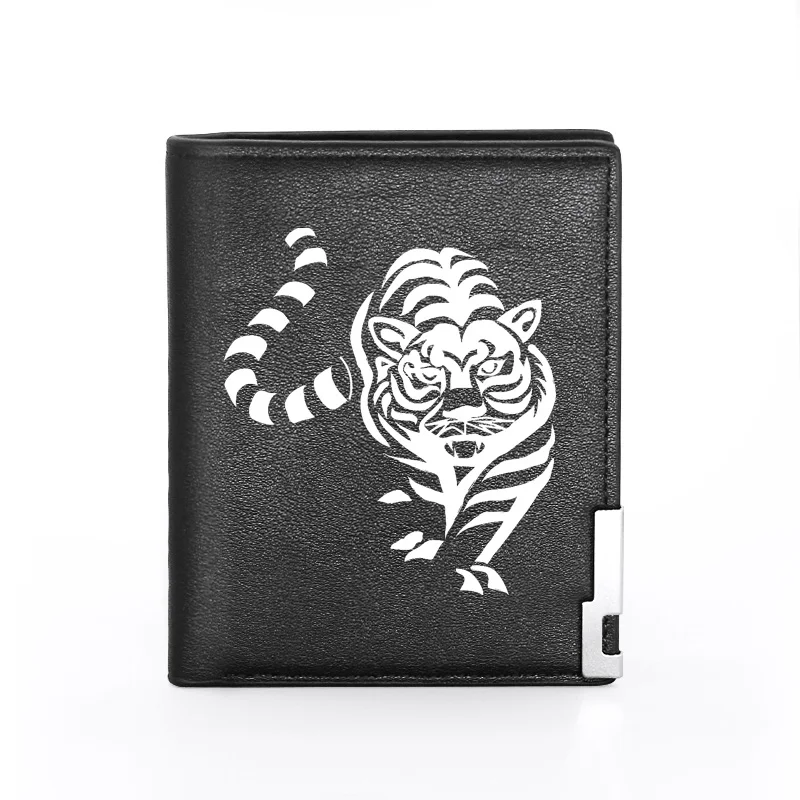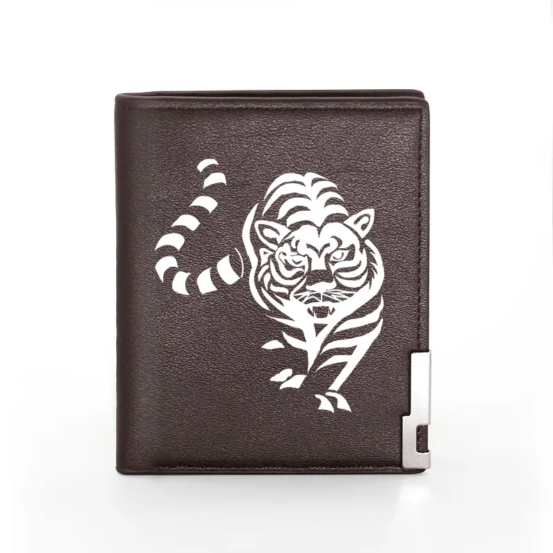 Высококачественный кожаный мужской кошелек, индивидуальный классический кошелек с изображением белого тигра для кредитных карт, короткий кошелек