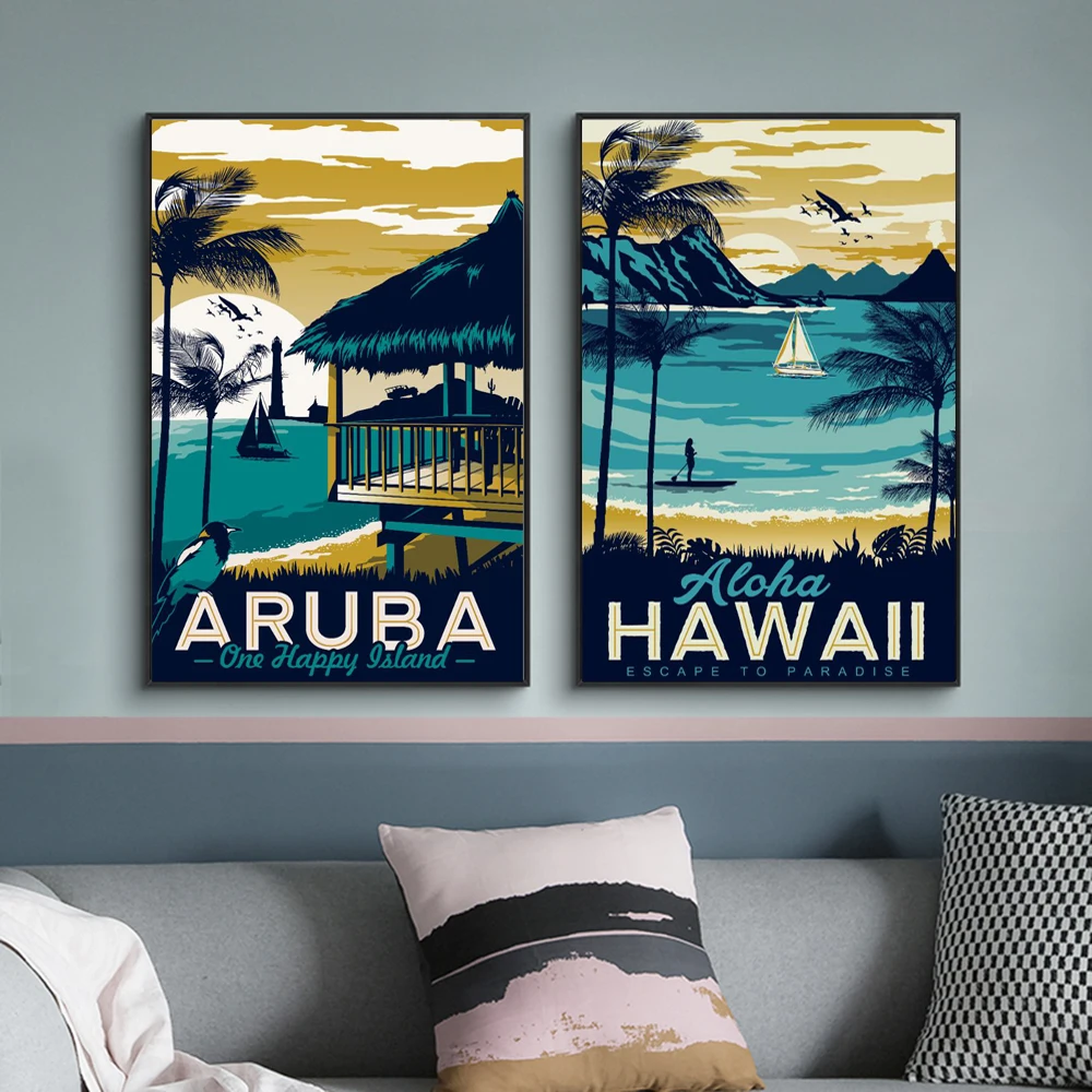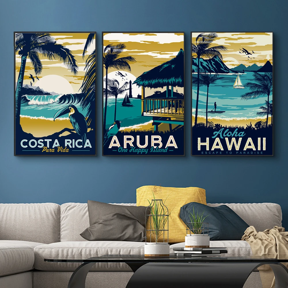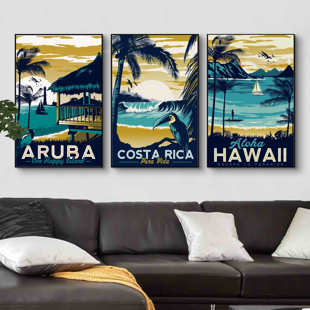 Современные абстрактные Ландшафтные плакаты и принты, Настенная картина, декоративное полотно, Коста-Рика, Аруба, гавайская картина для гостиной, домашний декор