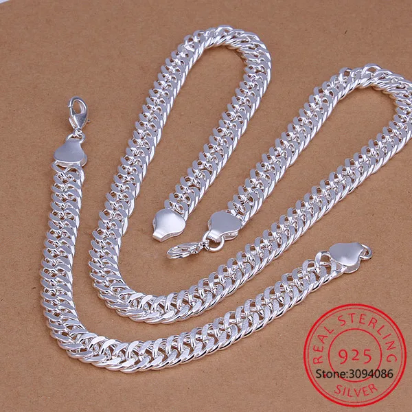 Комплект ювелирных изделий из серебра 925 пробы, Мужская цепочка с боковыми шнурками 10 мм, ожерелье 20 дюймов, браслет 8 дюймов, рождественский подарок