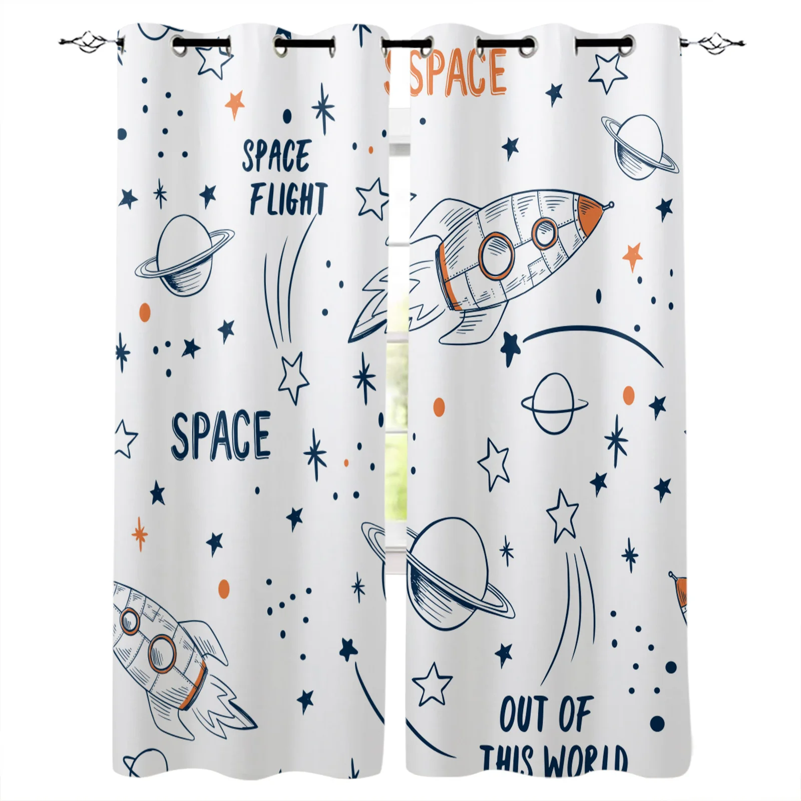 Летание ракеты с героями мультфильмов, с принтами вселенной, космоса белый Шторы для Гостиная Спальня обработки окна шторы для детской комнаты, Шторы s