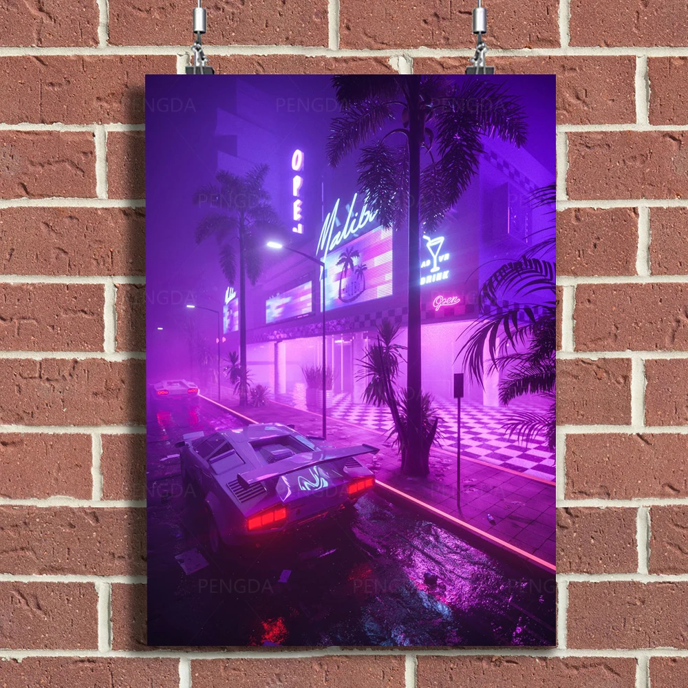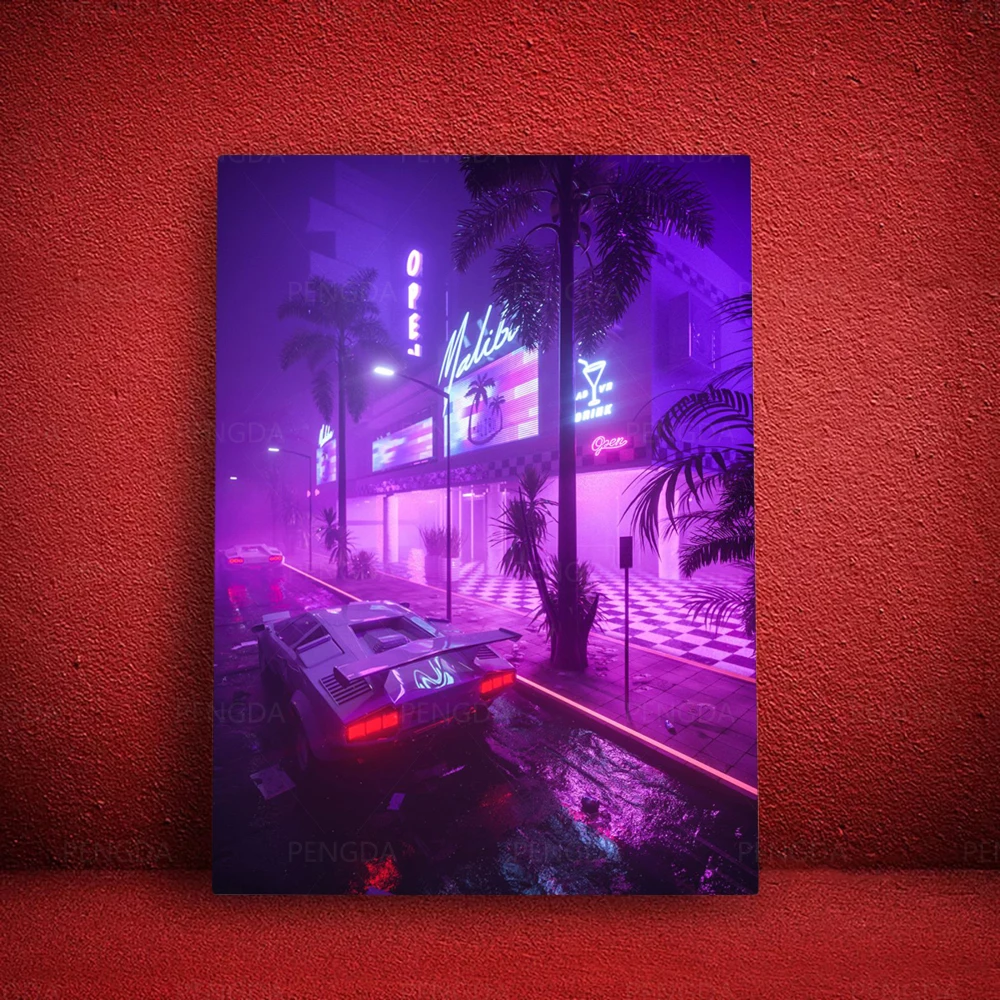 Настенная картина с неосветильник, модульные картины в стиле панк, настенное искусство Vaporwave, Декор для дома, роскошный автомобиль, современный постер, офисные рамки