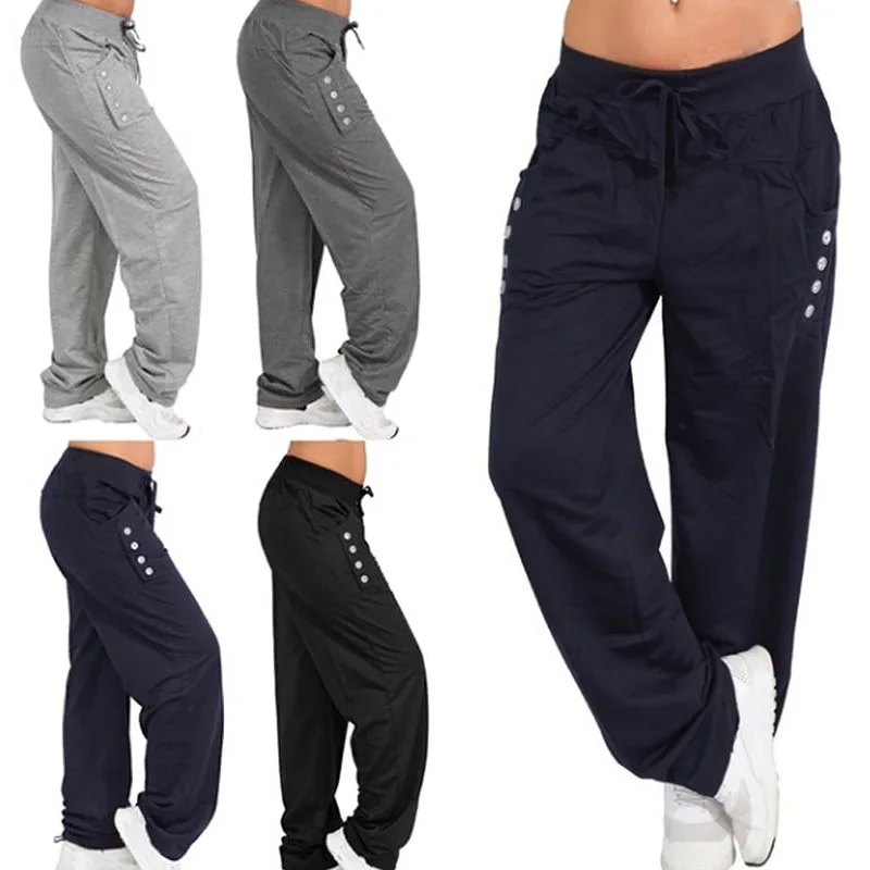 Женские свободные спортивные штаны размера плюс на весну и осень, женские модные спортивные штаны со средней талией, прямые брюки со шнуровкой, повседневные джоггеры