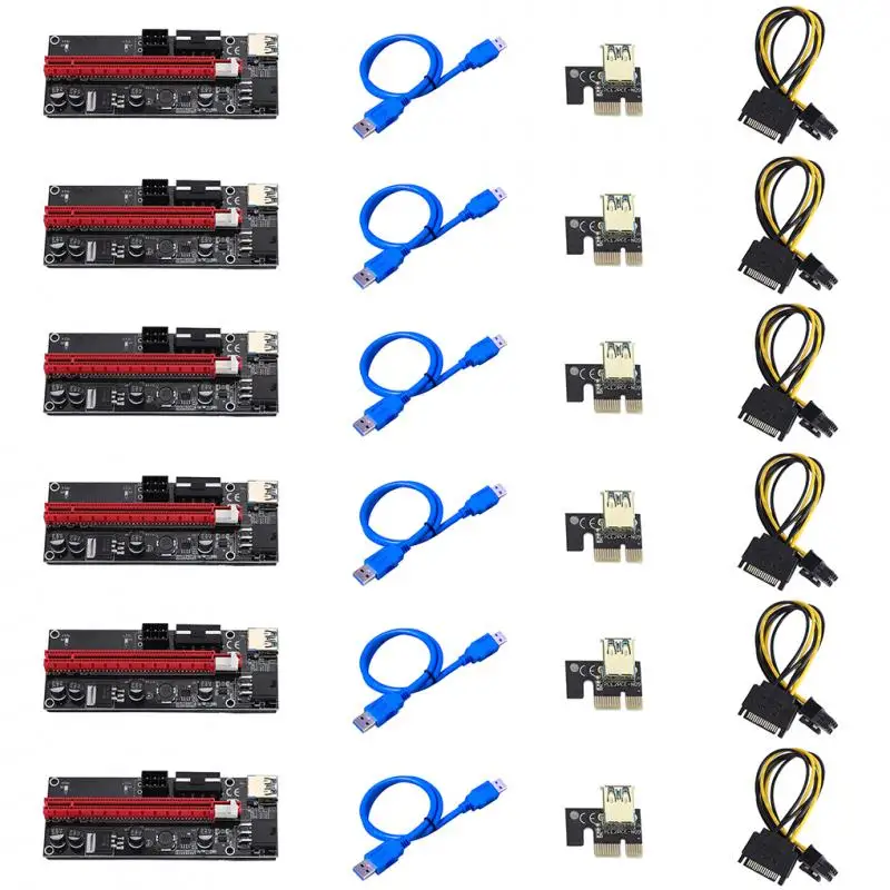 6 шт., Райзер VER009 USB 3,0 PCI-E, Райзер VER 009S Express 1X 4x 8x 16x, Райзер-адаптер, карта SATA, 15 контактов на 6 контактов, кабель питания