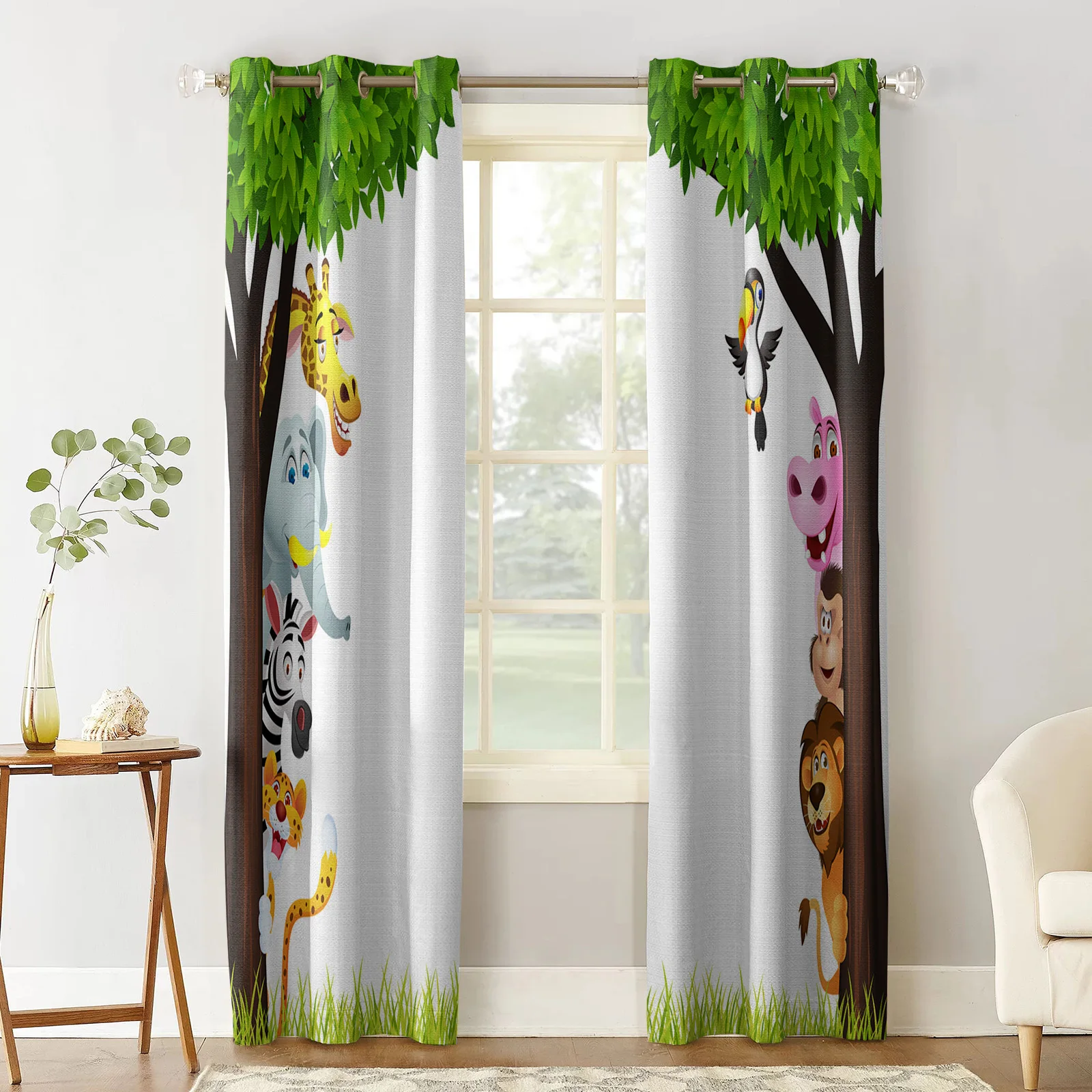 Занавески с изображением джунглей, животных, Льва, слона, жирафа, зебры, тигра, птицы, обезьяны для детской спальни, гостиной, Детские занавески
