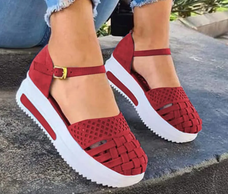 2021 г. Женская обувь удобные летние повседневные сандалии на танкетке женские красные римские сандалии с круглым носком женская обувь на платформе zapatillas muje