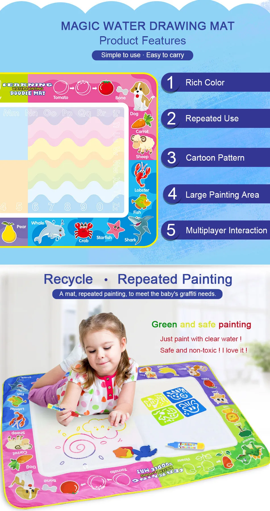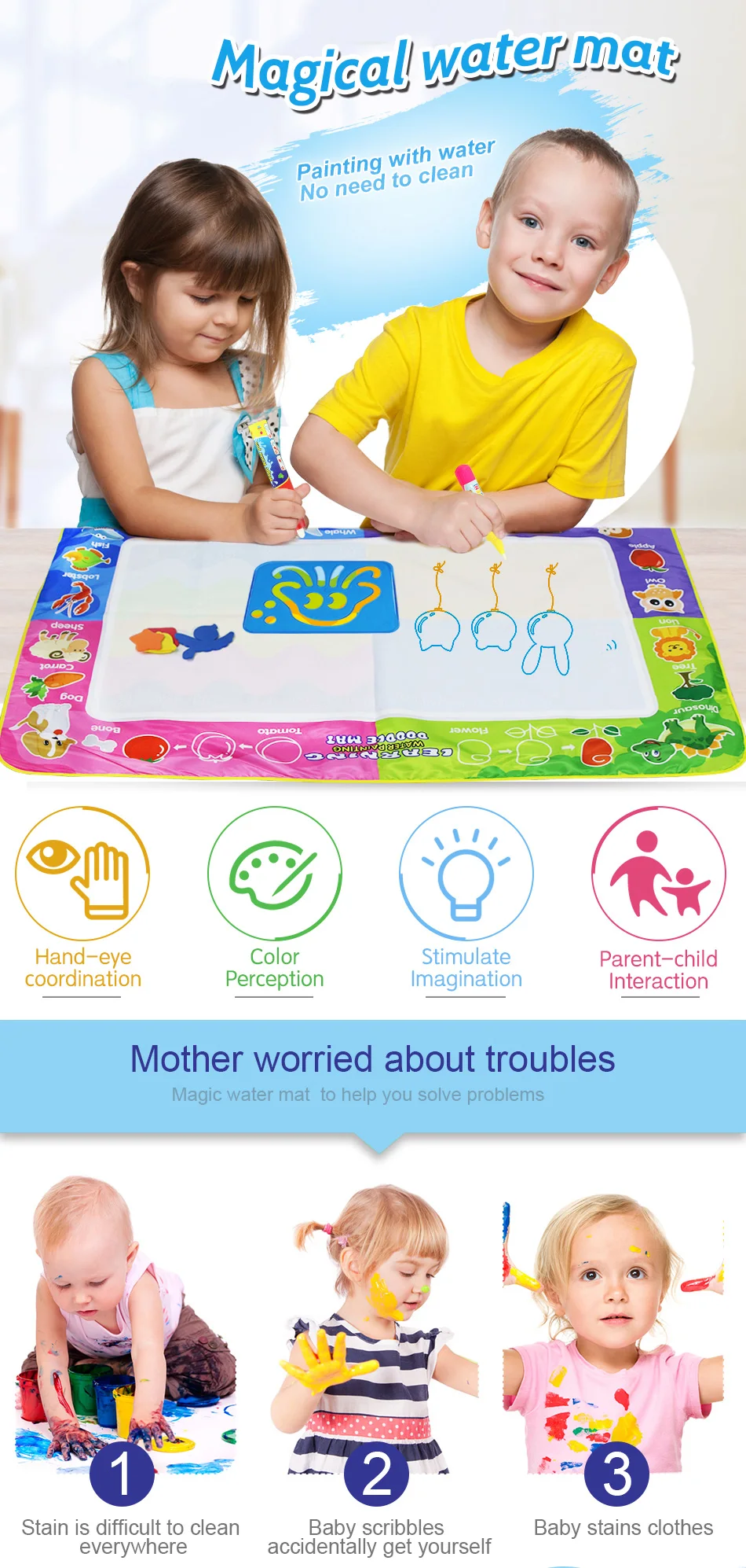 Большой размер волшебный водный коврик для рисования раскраска доска и волшебная ручка и печать набор многоразовые наборы для рисования обучающие игрушки для детей