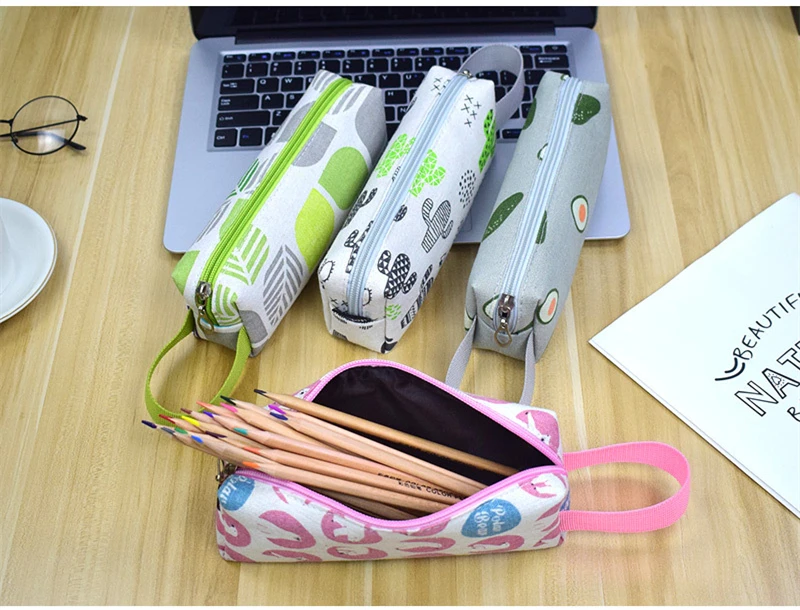 Креативный пенал простой портативный холст пенал небольшой свежий большой емкости сумка для карандашей студенческая канцелярская сумка для хранения
