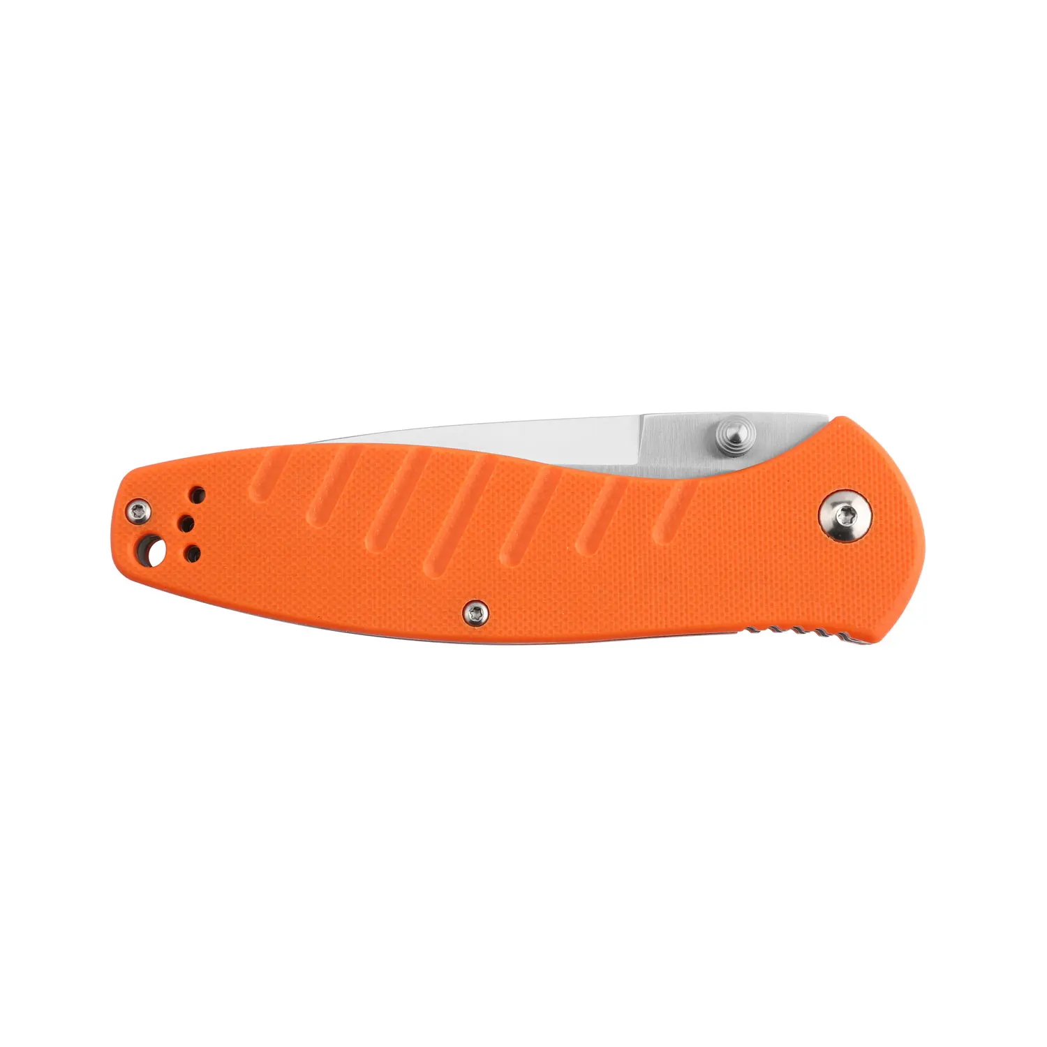 В качестве материала ручки выбран Стеклопластик G10. Заслужила доверие производителей и клиентов ножей благодаря коррозионной стойкости и долговечности. По этим основаниям G10 значительно превосходит другие виды пластмасс. Рукоятка ножа имеет удобный размер и форму. Его поверхность не гладкая а фактурная, более того, длинное углубление в нижней части ручки предотвращают скольжение. Также они служат декоративным элементом в общем дизайне. Ganzo G738 выпускается в трех вариантах каждый из них имеет разный цвет. Клиенты могут выбрать рукоять ножа черного, темно-зеленого или оранжевого цвета.