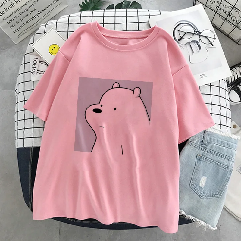 Японский с милым мультипликационным принтом милый медвежонок с принтом свободное с рукавами в стиле футболка с Короткими Рукавами Летняя женская футболка Harajuku повседневная одежда с О-образным вырезом, модная рубашка