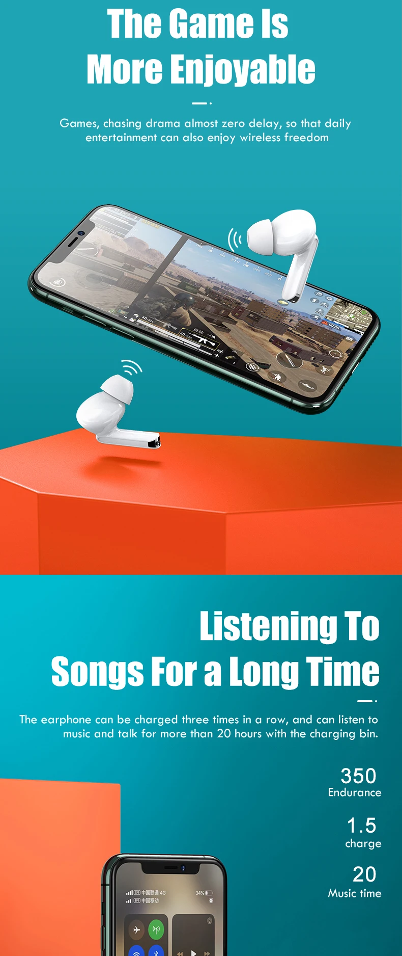 Feature 2Waterproof + Binaural Call + 300mAh Charging Case