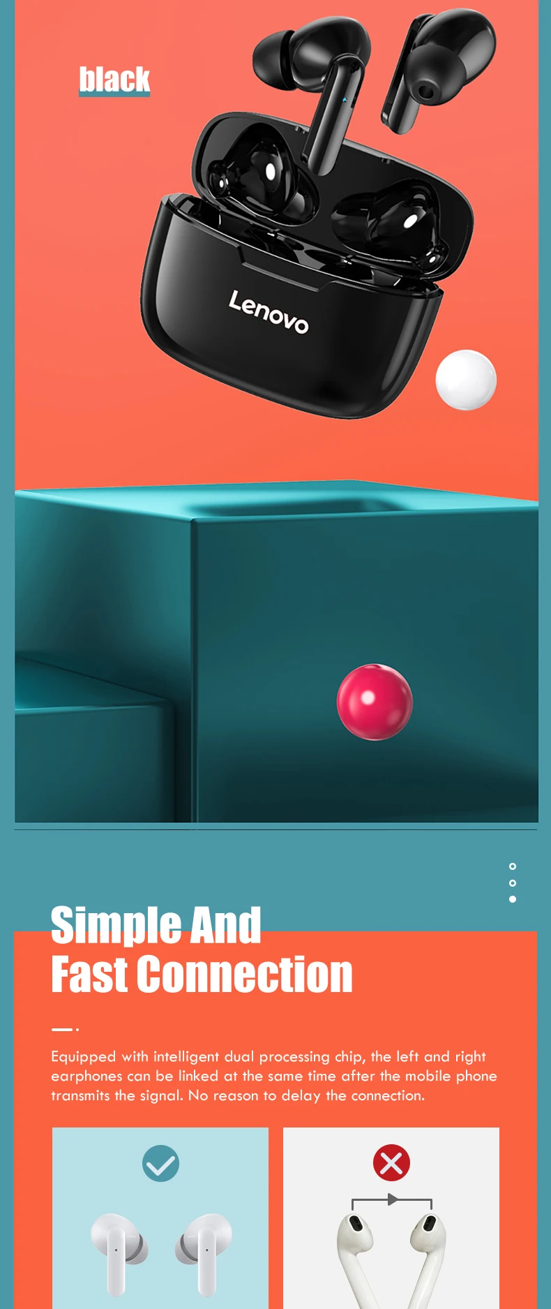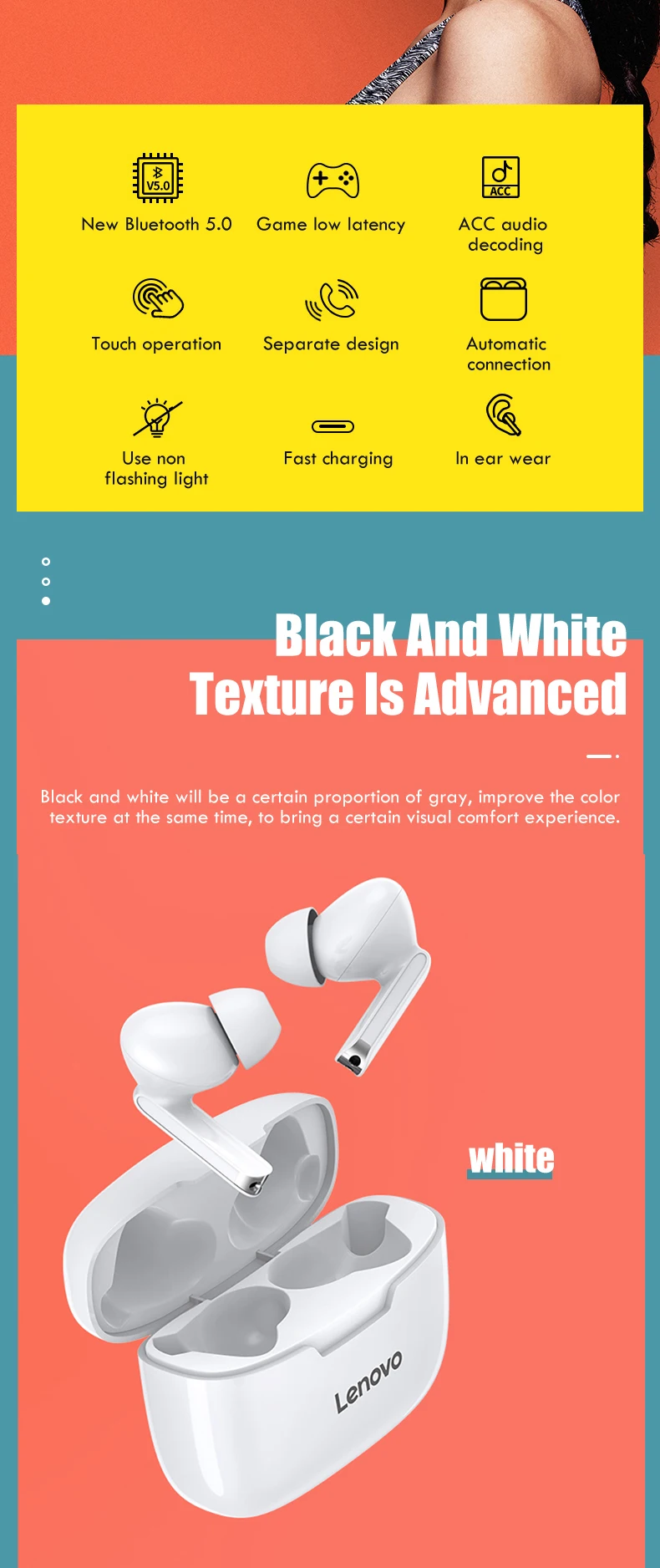 Примечание:Леново: XT90Особенности1. Bluetooth 5,0, Поддержка большинства устройств bluetooth и более низкое энергопотребление2, чехол на 300 мА · ч может полностью зарядить 2 наушника около 5 раз, обеспечивает более 24-часовой прослушивание музыки3. Благодаря водонепроницаемой технологии больше не нужно беспокоиться о воде и поте4, 8MMS двойной дисковод, наслаждайтесь 9D сильными глубокими басами, музыкальный звук5. Популярная функция сенсорного управления, поддержка переключения песен, телефонных звонков и голосовых вызовов.Списки аксессуаров:2 * Bluetooth-наушники1 * чехол для зарядки1 * USB-кабель1 * Руководство пользователя3 * чашки для наушников (размеры S,M,L)