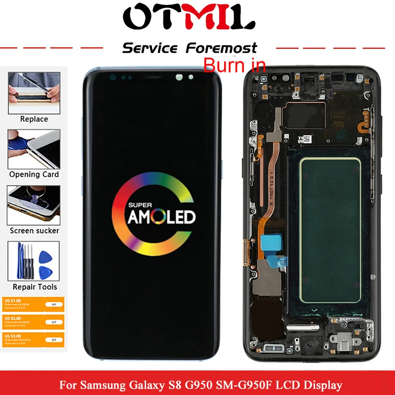 Дисплей Super AMOLED для Samsung Galaxy S8, ЖК-дисплей, сенсорный экран, дигитайзер в сборе для Galaxy S8 G950 5,8 битых пикселей