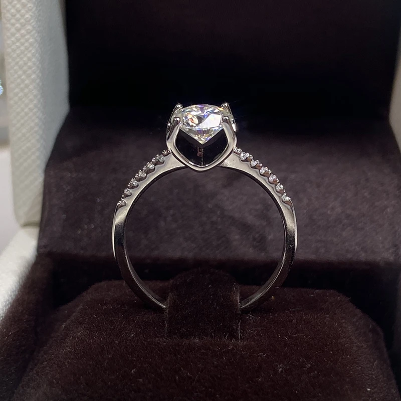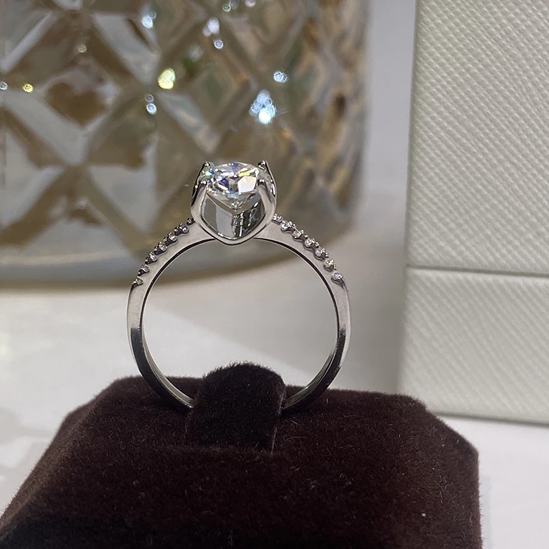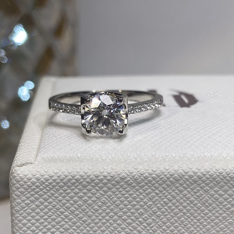 Кольцо с муассанитом 1 карат и D-образным цветом VVS1, отличный подарок на помолвку для женщин, лабораторное кольцо с бриллиантом, чистое серебро 925 пробы