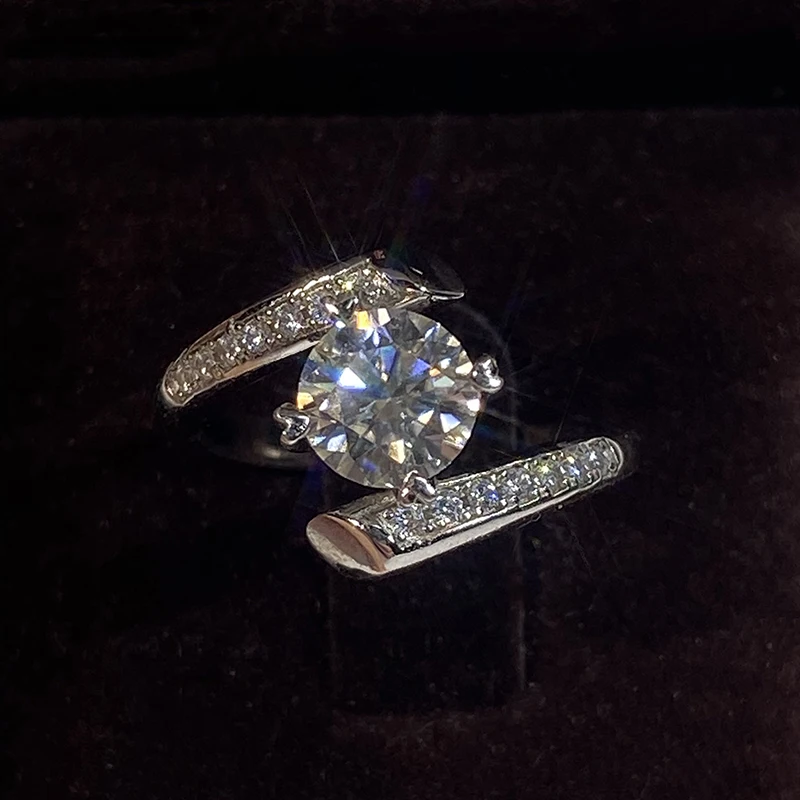 Кольцо с муассанитом, серебро 100% пробы, 1 карат, 2 карата, D, VVS1