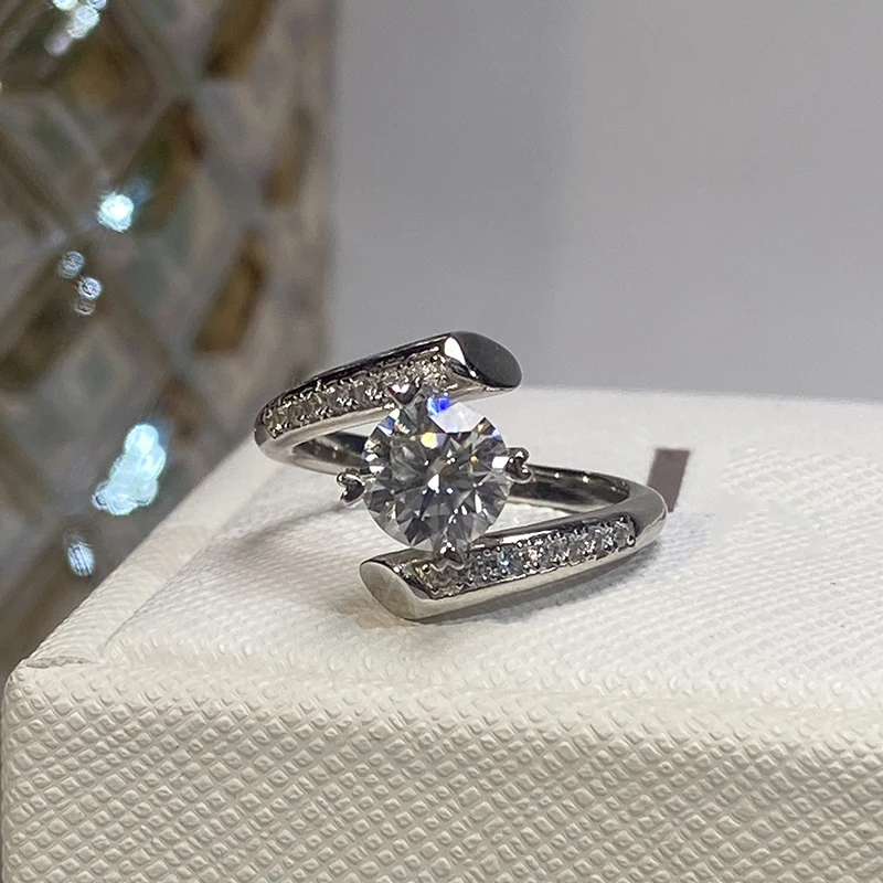 Кольцо с муассанитом 1 карат и D-образным цветом VVS1, отличный под...