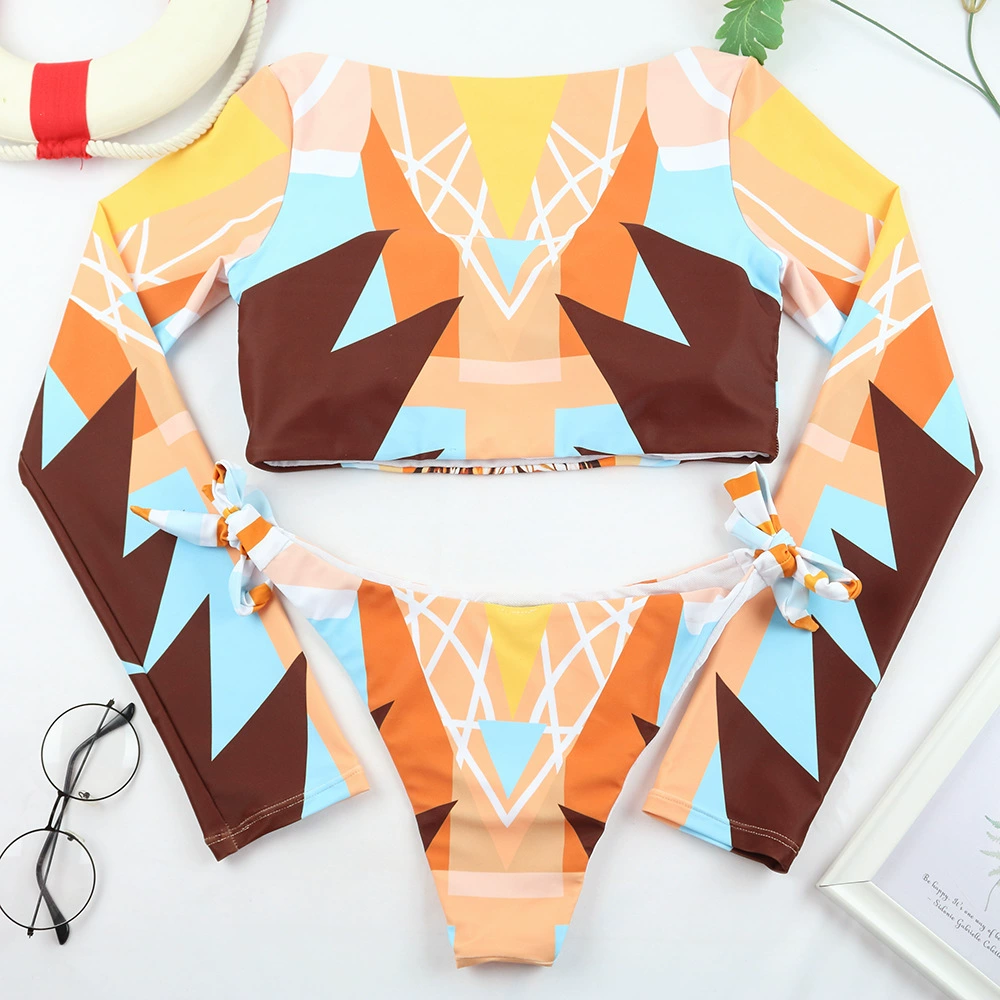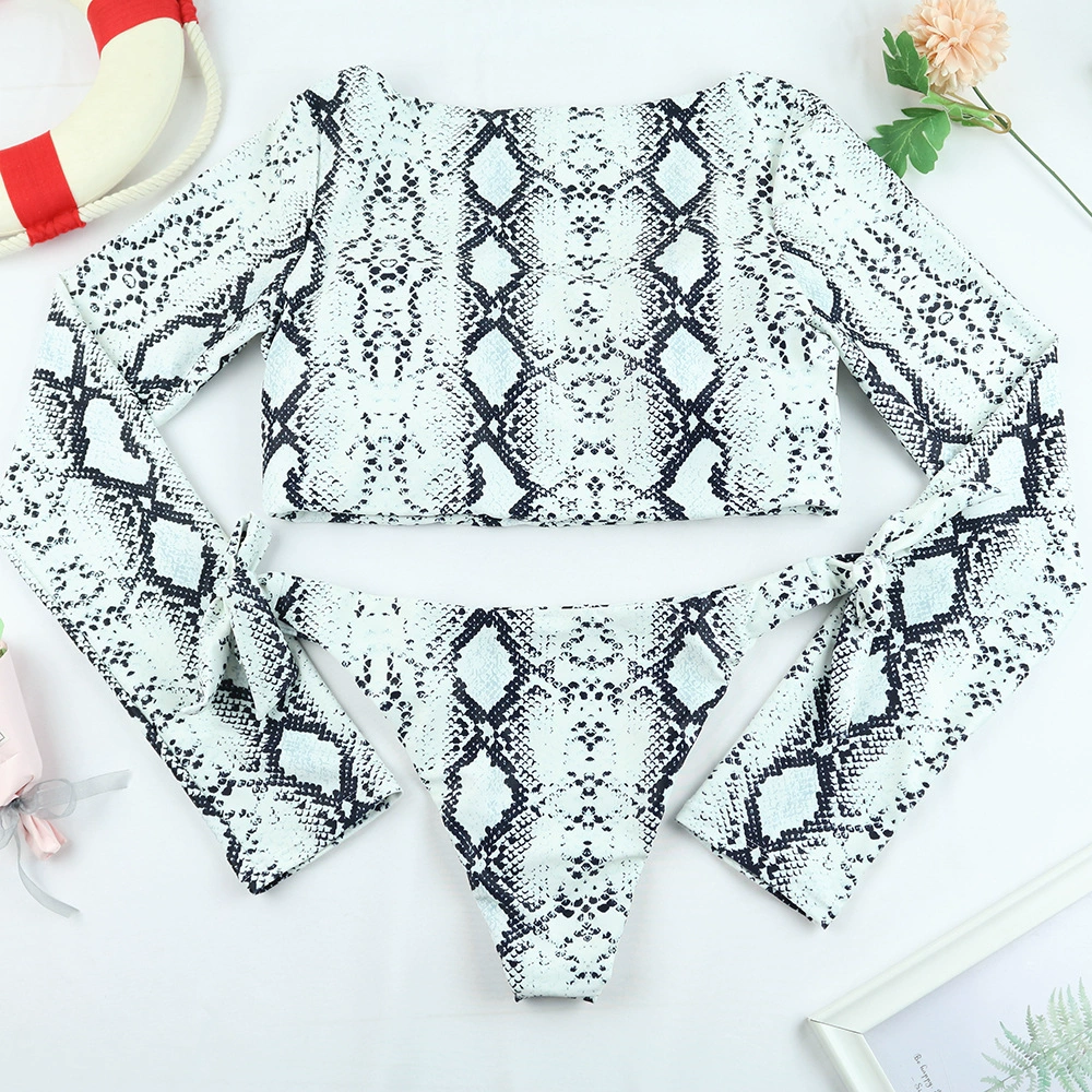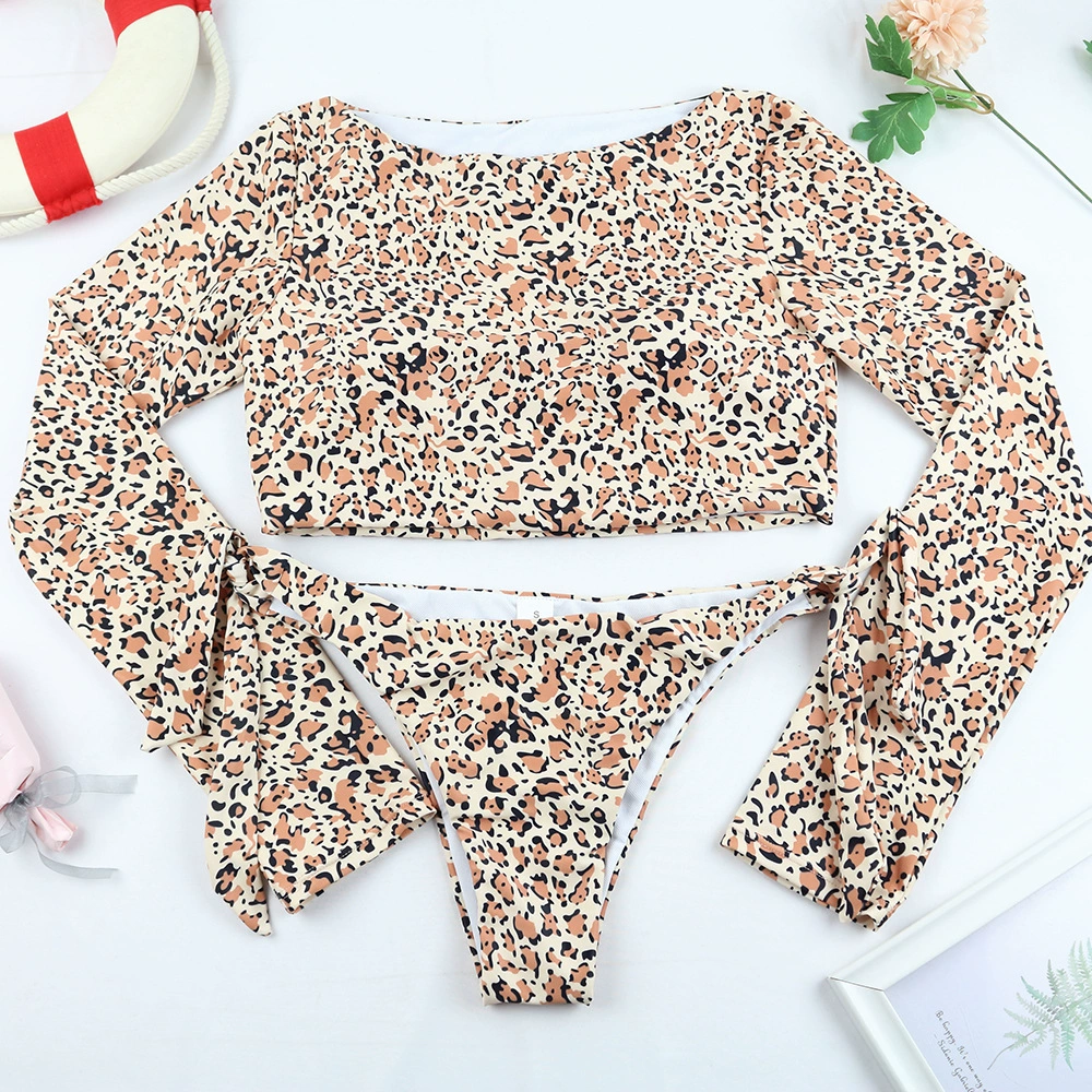 2021 новый сексуальный купальник бикини с леопардовым принтом высокого разрешения, Женский солнцезащитный купальник с длинными рукавами, Летний Пляжный раздельный купальник