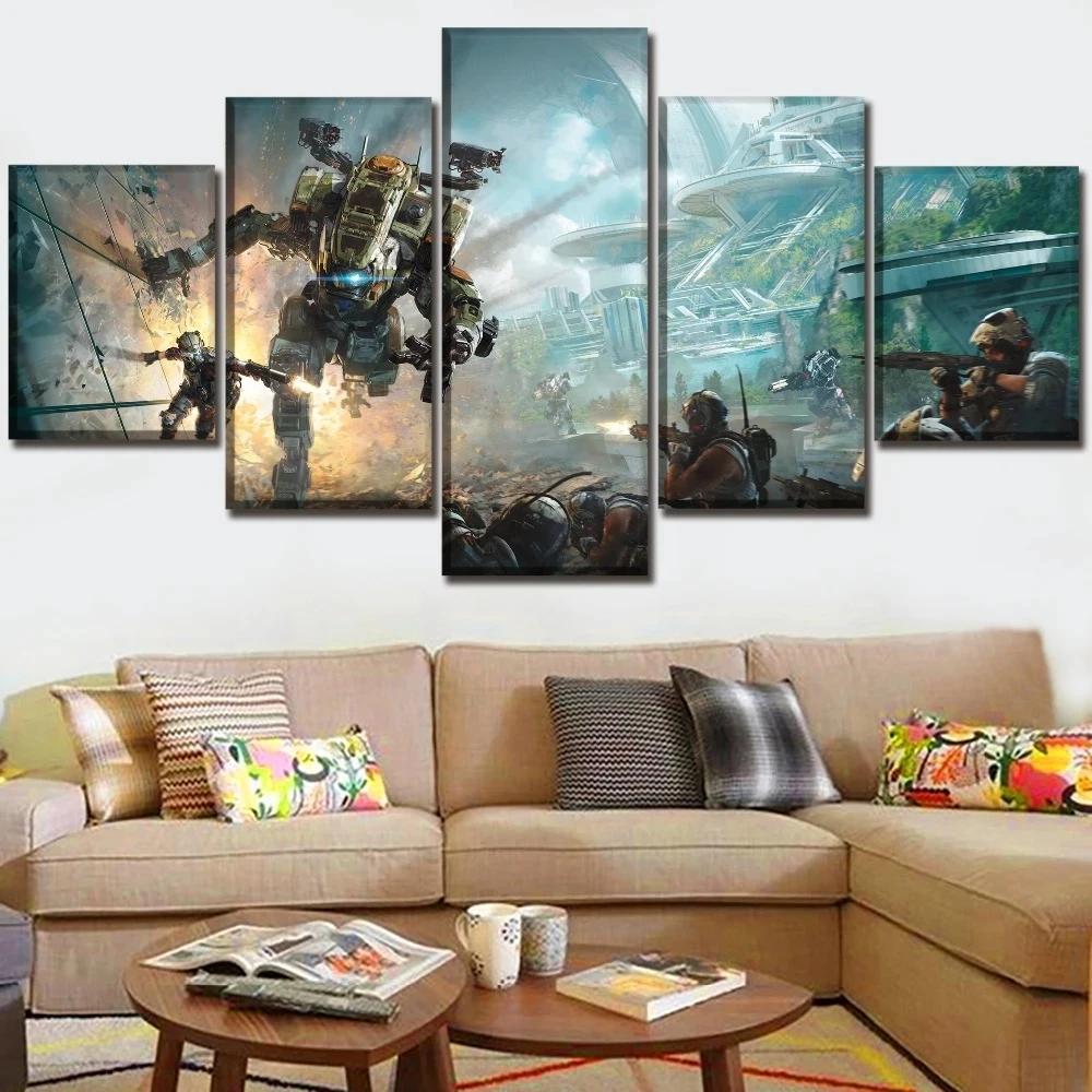 Настенная картина из 5 предметов, модульный холст, HD печать, игра Титан, 2 картины, домашний декор, плакаты, картины, Современная гостиная с рамкой