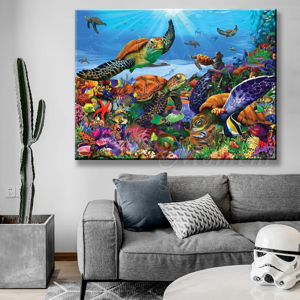 Когда-либо в настоящий момент алмазная живопись на холсте животный принт Черепашки-ниндзя подводных Вышивка крестом полная квадратная Алмазная мозаика аксессуары S2F2772